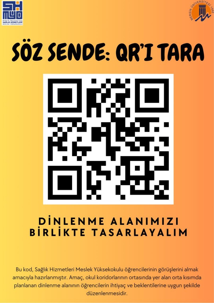 Bu Link , Mersin Üniversitesi Sağlık Hizmetleri Meslek Yüksekokulu öğrencilerinin görüşlerini almak amacıyla hazırlanmıştır. Amaç, okul koridorlarının ortasında yer alan orta kısımda planlanan dinlenme alanının öğrencilerin ihtiyaç ve beklentilerine uygun şekilde düzenlenmesidir.