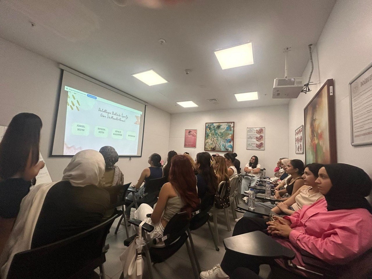 Mersin Üniversitesi Sağlık Bilimleri Fakültesi Ebelik Bölümü son sınıf öğrencilerine yönelik Mersin Şehir Hastanesi Gebe Okulunda 16.0.9.2025 tarihinde Prof.Dr.Gözde GÖKÇE İSBİR ve Ebe Ayşenur Gamze YÜREK tarafından “Doğumda Evrensel Destekleyici Bakım Eğitimi” yapıldı. Bu eğitimle İntörn öğrencilerimiz doğum yapan her kadının hakkı olan saygın bakımı sunabilecekler