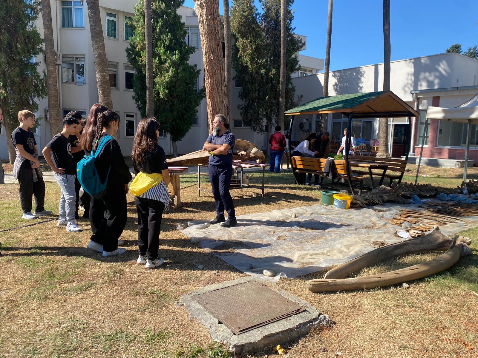 Ziyaretin en dikkat çekici noktalarından biri, 2021 yılında Mersin Körfezi’nde deniz aracı çarpması sonucu yaşamını yitiren 17 metrelik fin balinasının iskelet çalışması oldu. Öğrenciler, dev deniz canlısının iskeletinin çıkarılması sürecine tanıklık ederek, deniz biyolojisi ve koruma çalışmaları hakkında farkındalık kazandı.