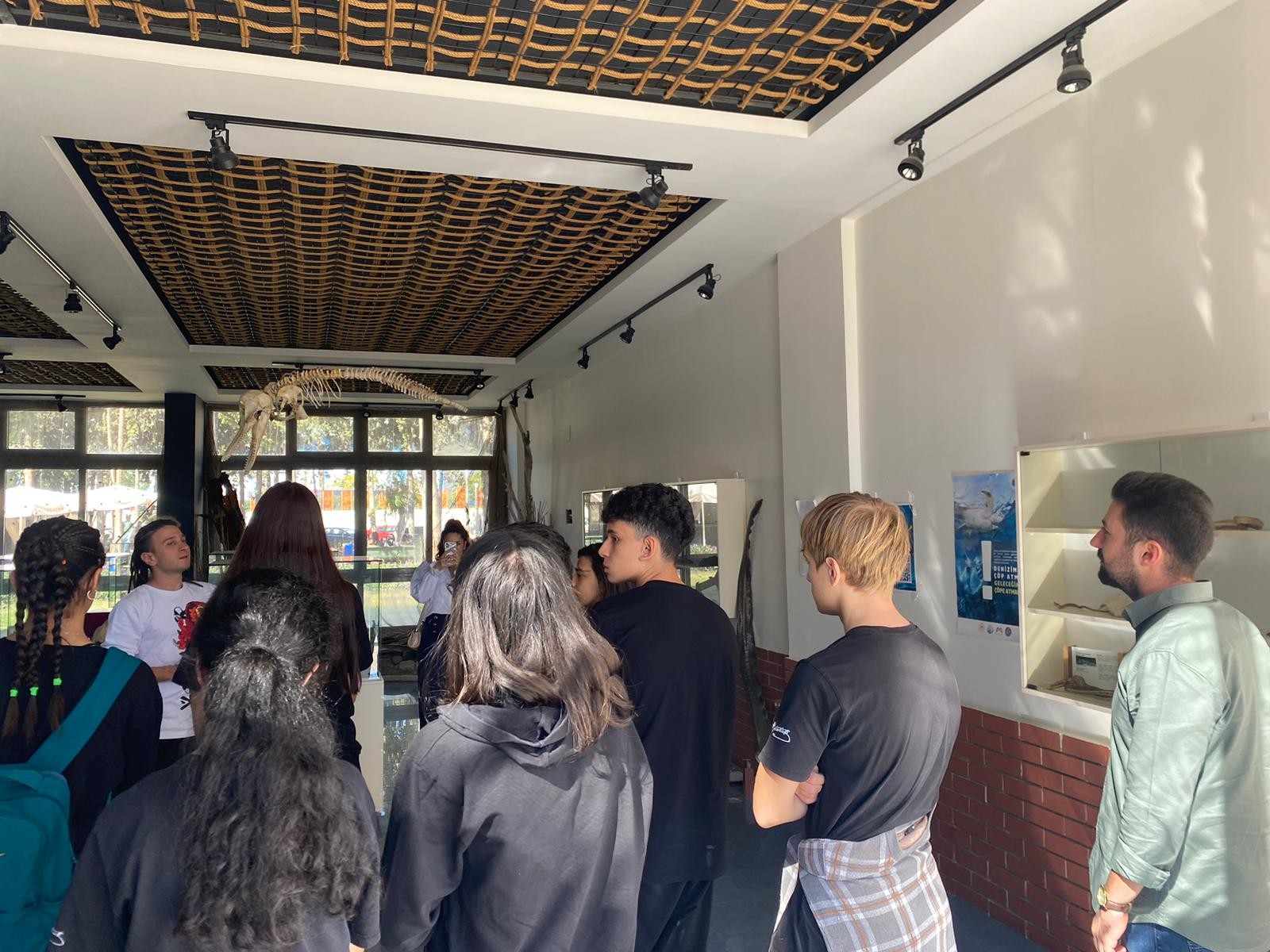 Evrensel Kültür Anadolu Lisesi’nin 10-B şubesi, 8 öğrenci ve sınıf öğretmenleri Anıl Yumuşak ile Tuğba Uğuz rehberliğinde Mersin Üniversitesi Su Ürünleri Fakültesi bünyesindeki Deniz Canlıları Müzesi’ni ziyaret etti. Bilim ve doğa temalı bu eğitim gezisi kapsamında öğrenciler, deniz ekosistemi hakkında yerinde bilgi edinme fırsatı buldu.