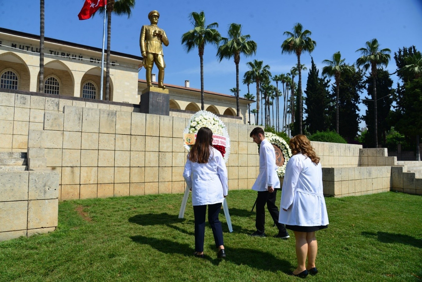 14 Mayıs 2025 Çarşamba günü, 1839 yılında Mekteb-i Tıbbiye-i Şahane’de açılan ilk eczacılık sınıfı ile ülkemizde eczacılığın akademik bir meslek haline gelişinin 186. yılı olan “14 Mayıs Eczacılık Günü” kutlamaları, Cumhuriyet Alanı’ndaki Atatürk Anıtı’na çelenk sunulmasıyla başladı. TEB 25. Bölge Mersin Eczacı Odası tarafından düzenlenen 14 Mayıs Eczacılık Günü Etkinlikleri, Mersin Eczacı Odası’nın MESAP Konferans Salonu’ndaki törenle devam etti. Törene; Rektör Yardımcımız Prof. Dr. Ahmet Hakan ÖZTÜRK, Fakültemiz Dekanı Prof. Dr. Necmiye CANACANKATAN, Mersin Tabip Odası Yönetim Kurulu Üyesi Dr. Abbas KOLUAÇIK, Türk Eczacıları Birliği Merkez Heyeti Üyesi Uzm. Ecz. Özgün SAĞIR, 25. Bölge Mersin Eczacı Odası Başkanı Ecz. Aliye AKGÜL AYDIN, Güney Ecza Kooperatifi Genel Sekreteri Uzm. Ecz. Çağrı Erdem ÖZDEMİR, akademik ve idari personelimiz ile Eczacılık Fakültesi öğrencilerimiz katıldı. Tören, saygı duruşu ve İstiklal Marşı’nın okunmasıyla başladı.