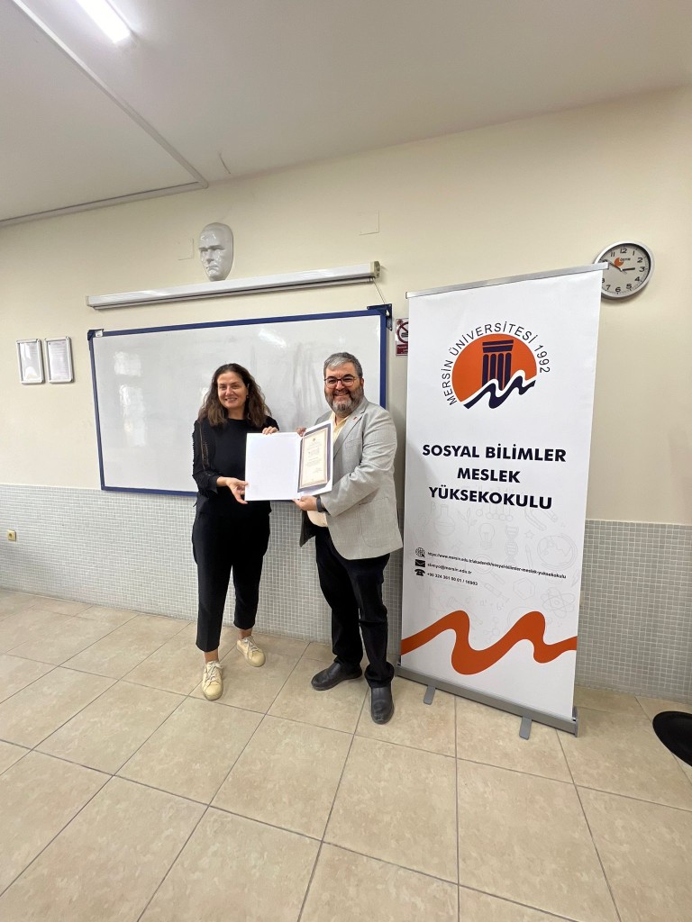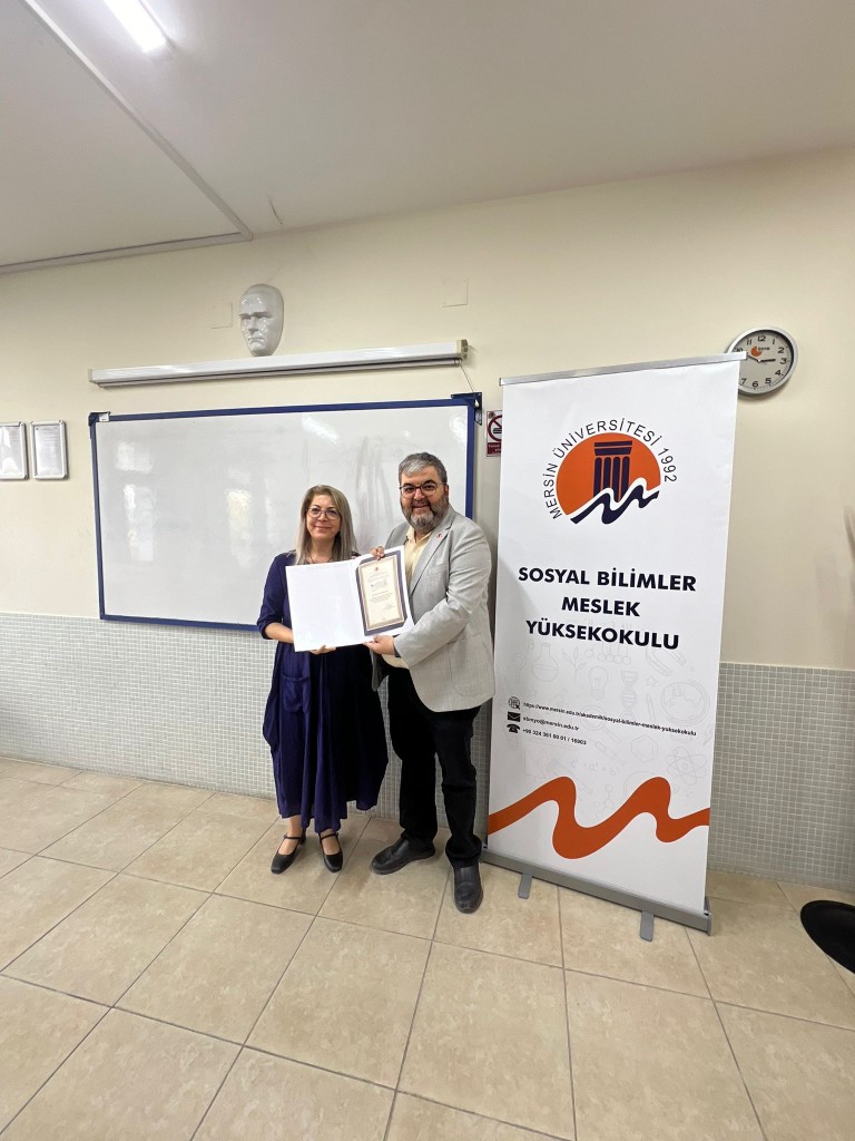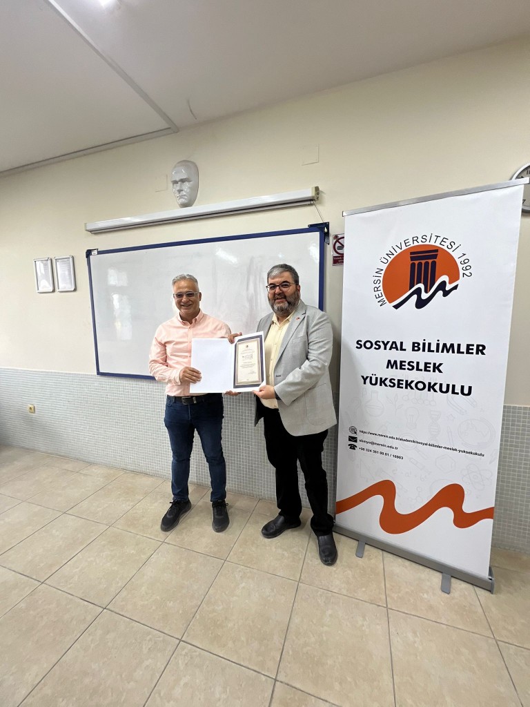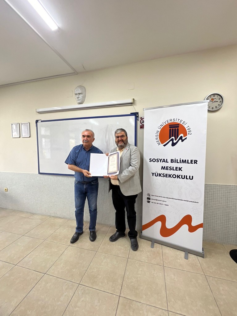 Mersin Üniversitesi Sosyal Bilimler Meslek Yüksekokulu’nda görevlerinde 25. yılını dolduran akademik ve idari personellere teşekkür belgeleri takdim edildi. Yüksekokul Müdürümüz Prof. Dr. İlhan Ege, uzun yıllar boyunca kurumumuza emek veren personellerimize teşekkür ederek belgelerini sundu.