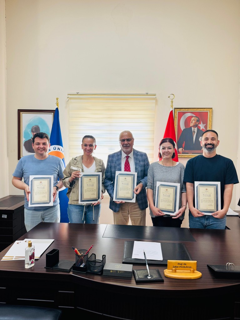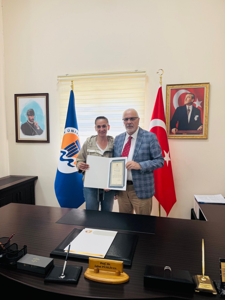 Fakültemiz öğretim üyelerinin danışmanlığında yürütülen TÜBİTAK 2209-A Üniversite Öğrencileri Araştırma Projelerinde desteklenmeye hak kazanan projelerde başarı elde eden öğretim üyelerimizin adına Dekanımız Prof. Dr. Zekai PEHLEVAN’a 21 Ekim Salı günü Senato Odası’nda düzenlenen törenle Rektörümüz Prof. Dr. Erol YAŞAR tarafından teşekkür belgesi takdim edildi.
