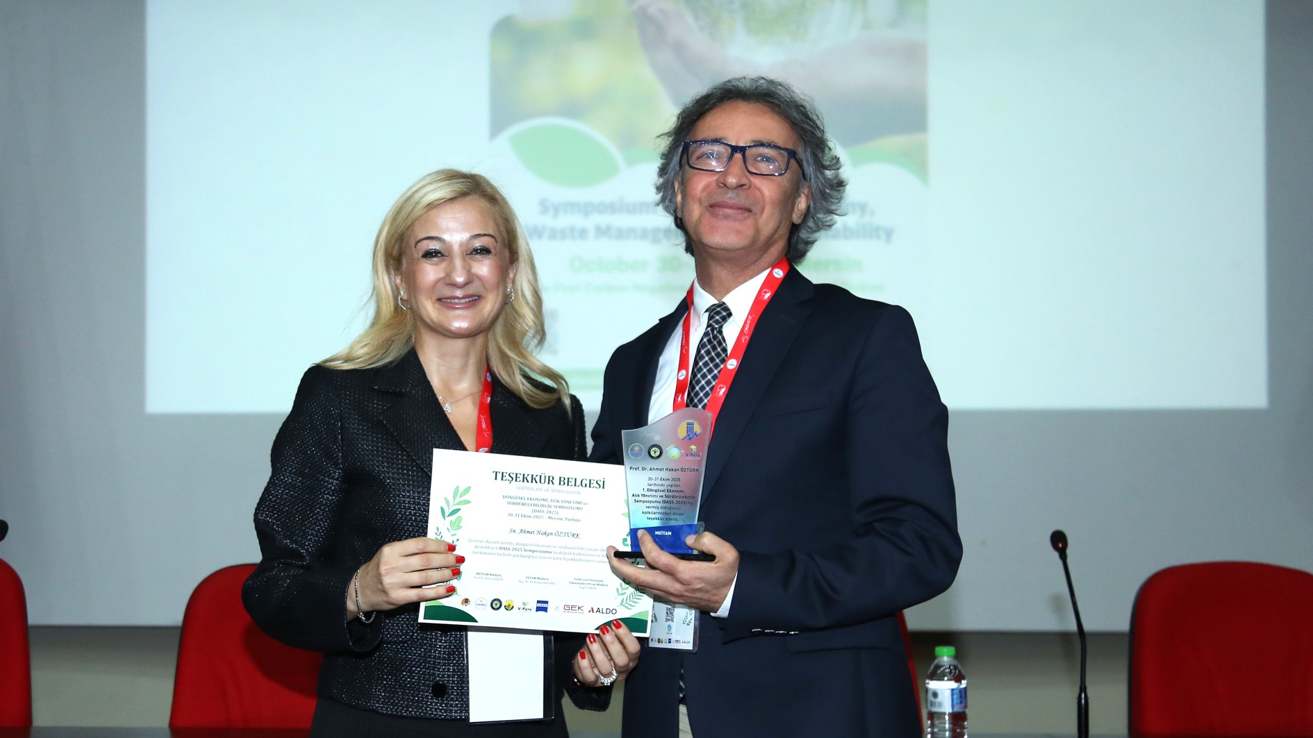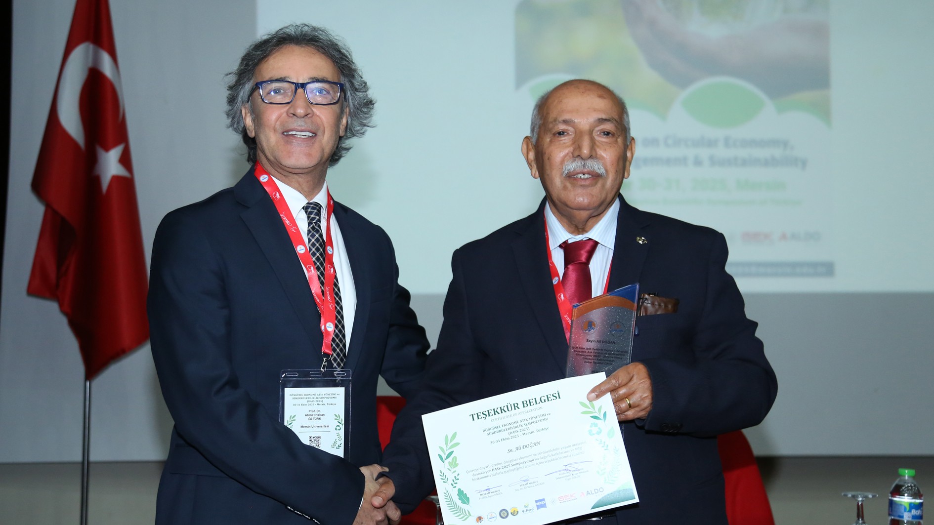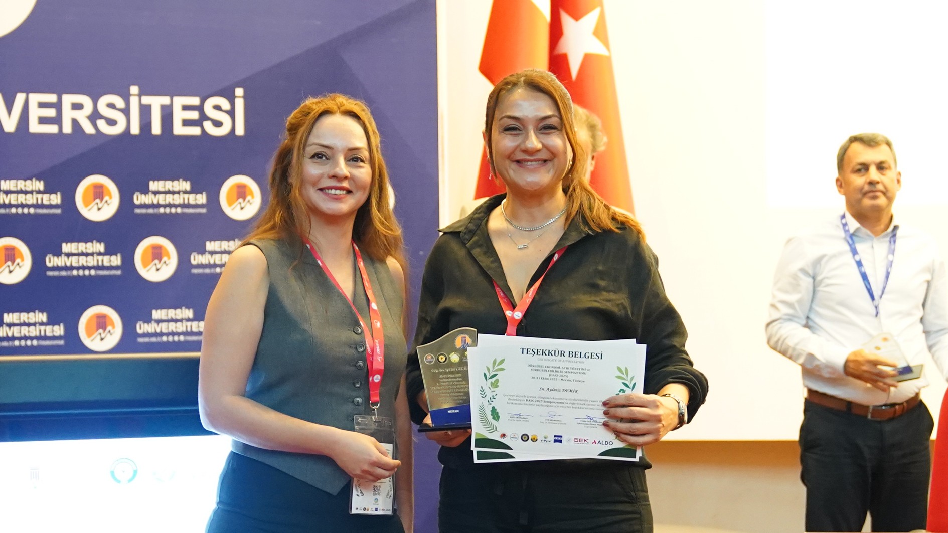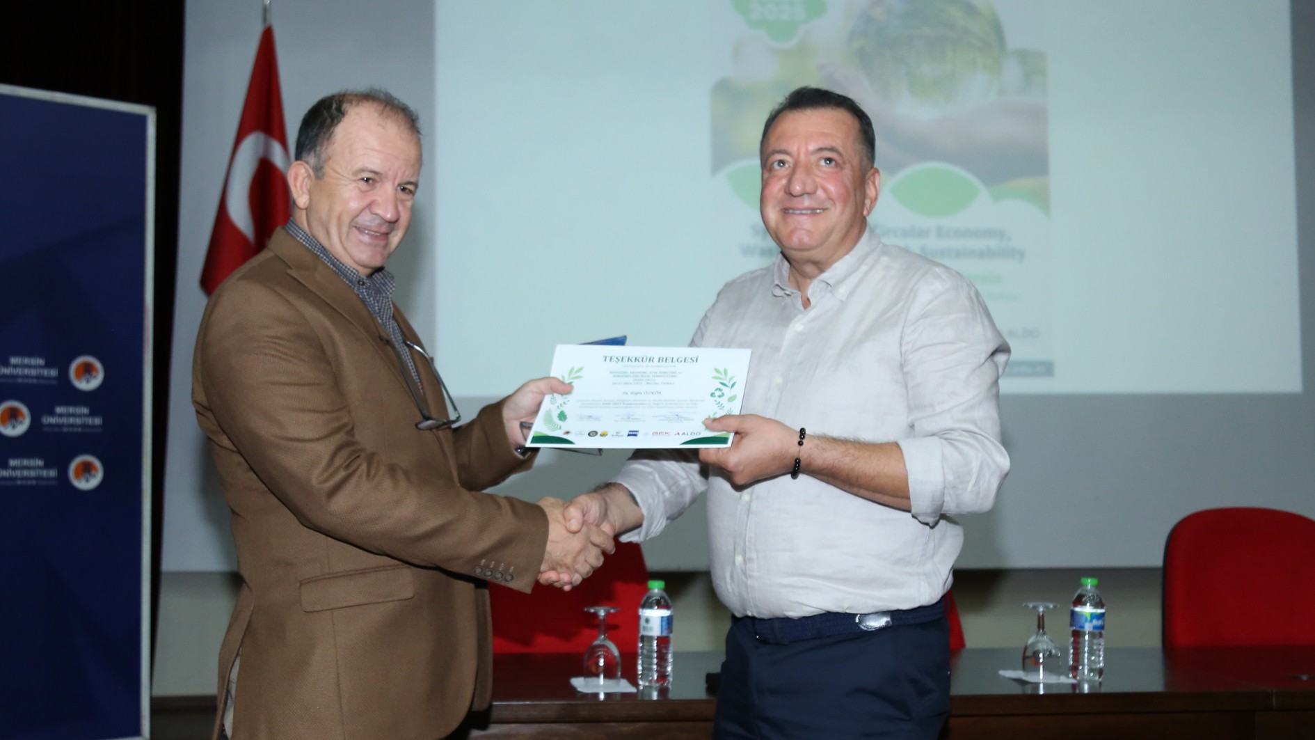 Açış konuşmalarının ardından Rektör Yardımcımız Prof. Dr. Ahmet Hakan Öztürk’e, Toros Üniversitesi Rektörü Prof. Dr. Ömer Arıöz adına Prof. Dr. Köksal Hazır’a, Prof. Dr. Aylin Döğen'e, Doç. Dr. Ali Kemal Havare'ye, Ali Doğan’a, Veldo Makine Geri Dönüşüm Teknolojileri Proje Müdürü Ergin Özkök’e teşekkür belgesi ve plaket takdim edildi.