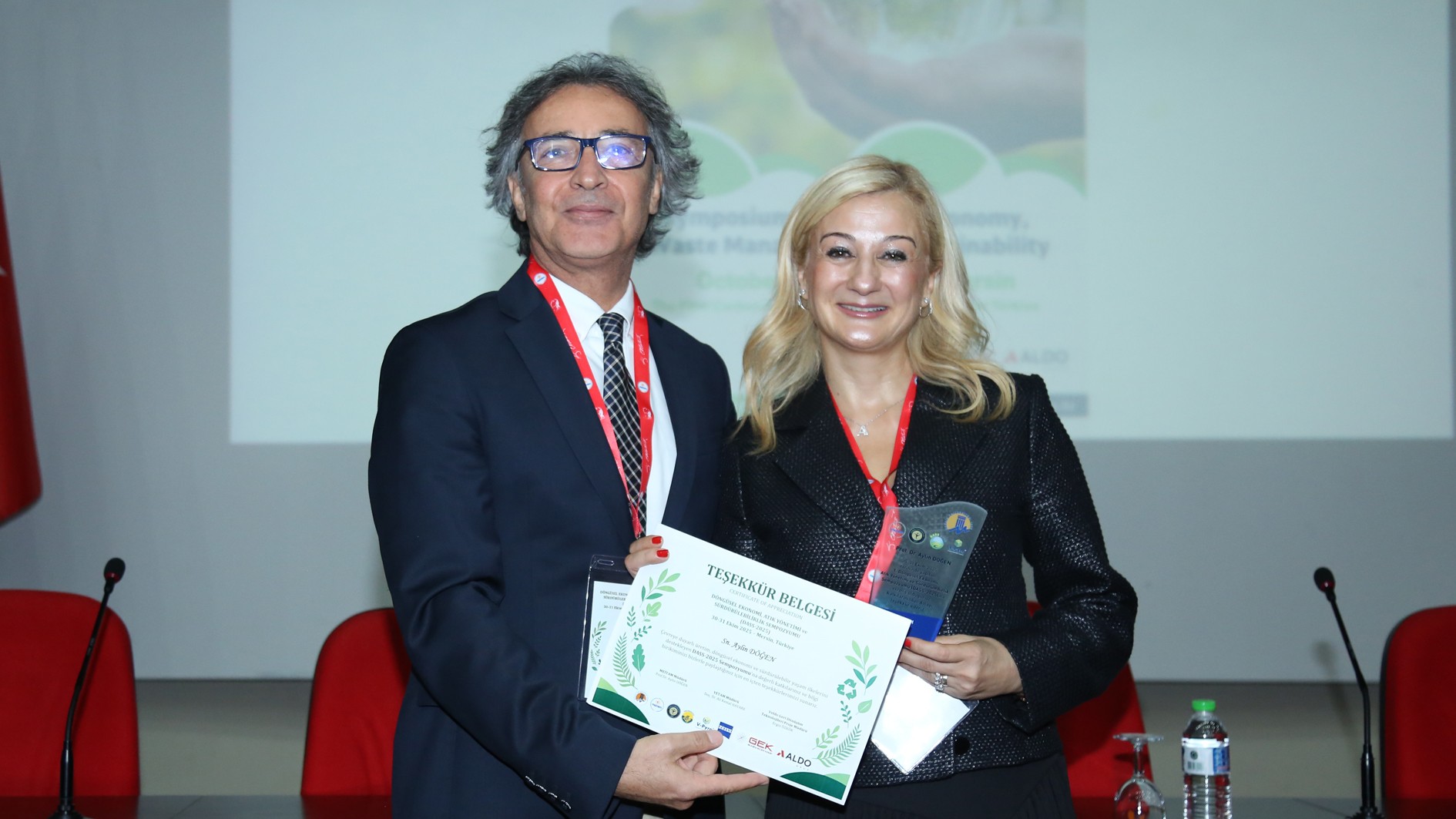 ALDO Grup Yönetim Kurulu Başkanı Ali Doğan konuşmasında, “Bugün burada sadece bir sempozyum gerçekleştirmiyoruz. Burada yaşanabilir bir dünya için sözü ve sorumluluğu olan insanlar buluşuyor. Doğanın bize verdiğine karşılık bizim kendisine ne verdiğimizi sorguluyoruz. Doğayı korumak sadece ekolojik bir görev değil, inançlarımızın, kültürümüzün ve vicdanımızın da bir gereğidir. Bilim insanlarımızın yıllardır dile getirdiği bir gerçeği sanayi ve iş dünyası olarak tüm açıklığıyla kabul etmeliyiz. Bugünün üretim modeli yarının felaketi olabilir. Bu yüzden dönüşmeliyiz.” ifadelerini kullandı.
