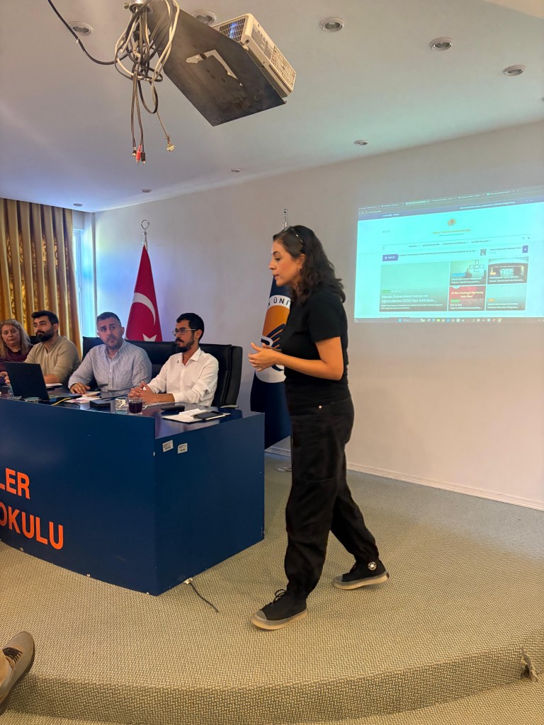 İlgili toplantının sonunda, Meslek Yüksekokulumuz Harita ve Kadastro Programı Öğretim Elemanı Üniversitemiz Mezun İzleme Koordinatör Yardımcısı Dr. Öğr. Üyesi Güzide ÖNAL tarafından, Mezun İzleme Koordinatörlüğü’nün amaçları, işleyişi ve birimlerle iş birliği süreçleri hakkında bilgilendirme sunumu gerçekleştirildi.