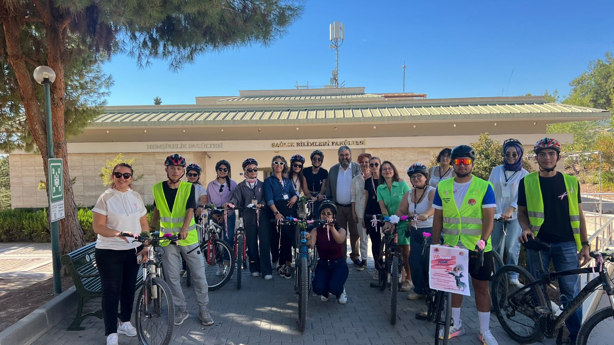 Mersin Üniversitesi Sağlık Bilimleri Fakültesi, Kadın Sağlığını Geliştirme Topluluğu ve Mersin Üniversitesi Bisiklet Topluluğu iş birliğiyle, 1–31 Ekim Meme Kanseri Farkındalık Ayı kapsamında “Pembe Pedal Kontrol Elinde” etkinliği gerçekleştirildi. “Hareket Fark Yaratır, Erken Teşhis Hayat Kurtarır” sloganıyla düzenlenen etkinliğin amacı, meme kanserinde erken tanının önemine dikkat çekmek ve toplumsal farkındalık oluşturmaktı.