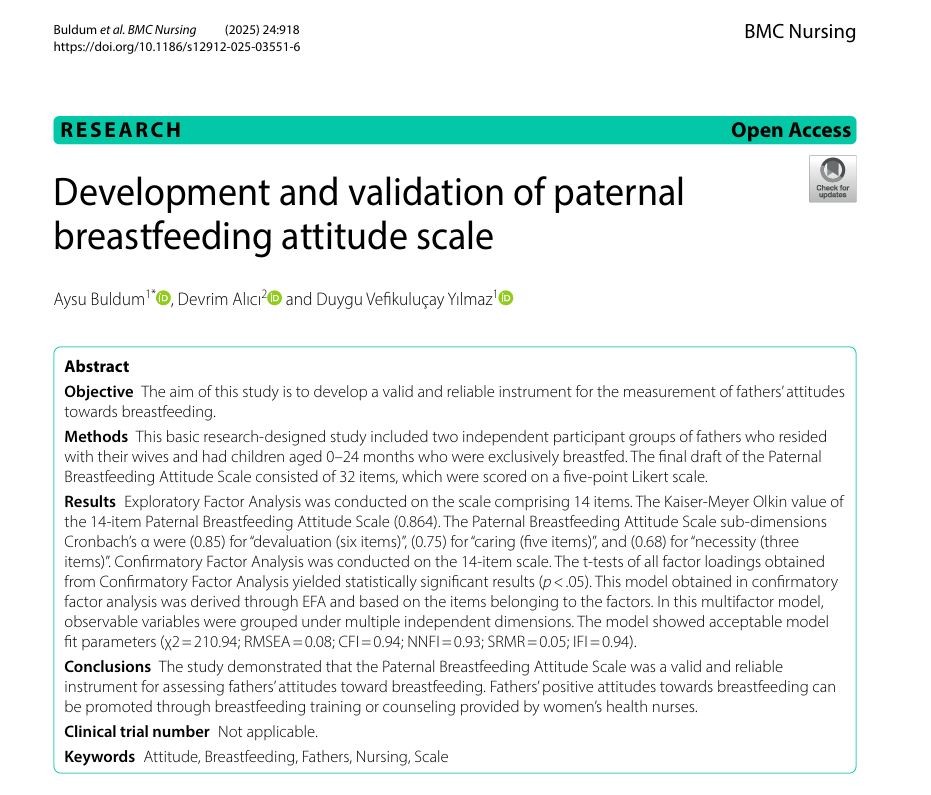 Buldum, A., Alıcı, D. & Yılmaz, D. Development and validation of paternal breastfeeding attitude scale. BMC Nurs 24, 918 (2025). https://doi.org/10.1186/s12912-025-03551-6