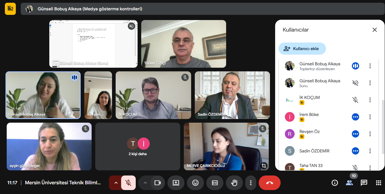 Teknik Bilimler Meslek Yüksekokulu (MYO) Gıda İşleme Bölümü, Mersin gıda sanayisinin öncü firmalarıyla çevrimiçi bir toplantı gerçekleştirdi. Toplantıya sektörden ARBEL Grup’tan (Tahıl ve bakliyat ürünleri) Sayın Osman AKÇA, Yörüksüt A.Ş.’den (Süt ve süt ürünleri) Sayın Revşen ÖZTAŞDEMİR, Mutili A.Ş.’den (Zeytin ve zeytinyağı) Sayın Türker ÇİFTÇİ, Tre Fette Gıda A.Ş. ‘den (Dondurulmuş pasta ürünleri ve aynı zamanda bölüm mezunu) Sayın İrem BÖKE ile Gıda İşleme bölümünden Prof. Dr. Sadin ÖZDEMİR (Bölüm Başkanı), Dr. Öğr. Üyesi Ayşin GÜZEL DEĞER (Bölüm Başkan Yardımcısı), Öğr. Gör. Dr. Günseli BOBUŞ ALKAYA, Öğr. Gör. Merve ÇARIKCIOĞLU, Öğr. Gör. Taha TAN katılım sağlamışlardır. Toplantıda; sektörün, mezun olacak gıda teknikerlerinden ne gibi nitelikler ve beceriler beklediği konuşuldu. Öğrencilerin sektördeki staj yapma olanakları değerlendirildi. Sektör ve akademi arasındaki işbirliğini geliştirecek yeni meseleler üzerine sohbet edildi. Paydaş danışma kurulu ve Müfredat geliştirme süreçleri kapsamında görüşler bildirildi. Toplantı, sektör temsilcileri ve Üniversite arasında karşılıklı işbirliği davetlerinin yapılmasıyla tamamlanmıştır. Bu toplantı, eğitim ve sektör arasındaki işbirliğini güçlendirmeye yönelik verimli bir etkinlik olarak belirtilmiştir.