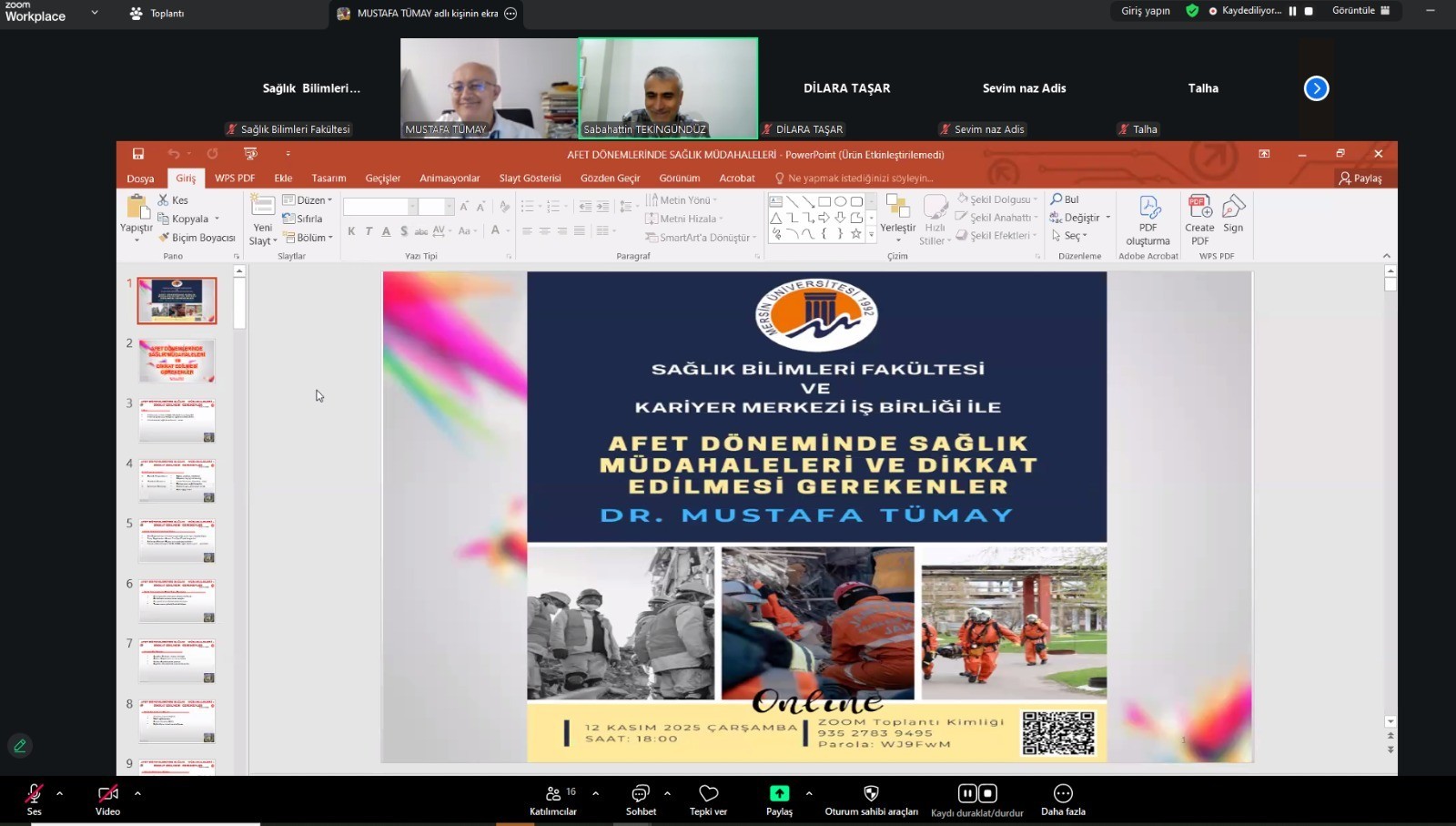 Mersin Üniversitesi Sağlık Bilimleri Fakültesi Sağlık Yönetimi Bölümü tarafından, “Afet Dönemlerinde Sağlık Müdahaleleri ve Dikkat Edilmesi Gerekenler” konulu çevrim içi bir seminer düzenlendi.