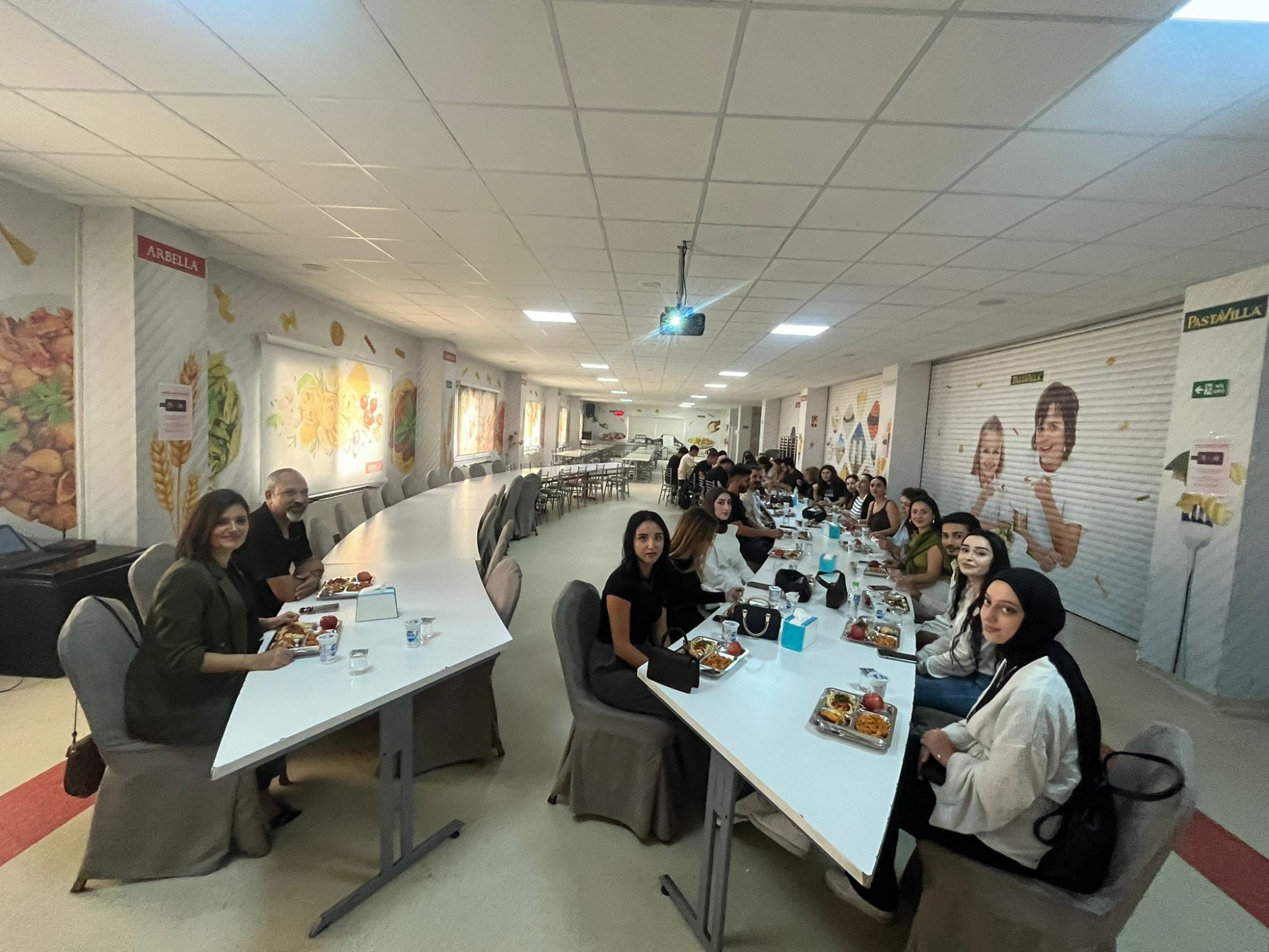 Gerçekleştirilen ziyarette öğrenciler, makarna üretim ve paketleme süreçlerini yakından inceleme fırsatı buldu. Arbel A.Ş.’de görev yapan Pazarlama Programı mezunumuz Makbule Polat, öğrencileri fabrika girişinde karşılayarak üretim hattı ve marka yönetimi hakkında bilgilendirme yaptı.