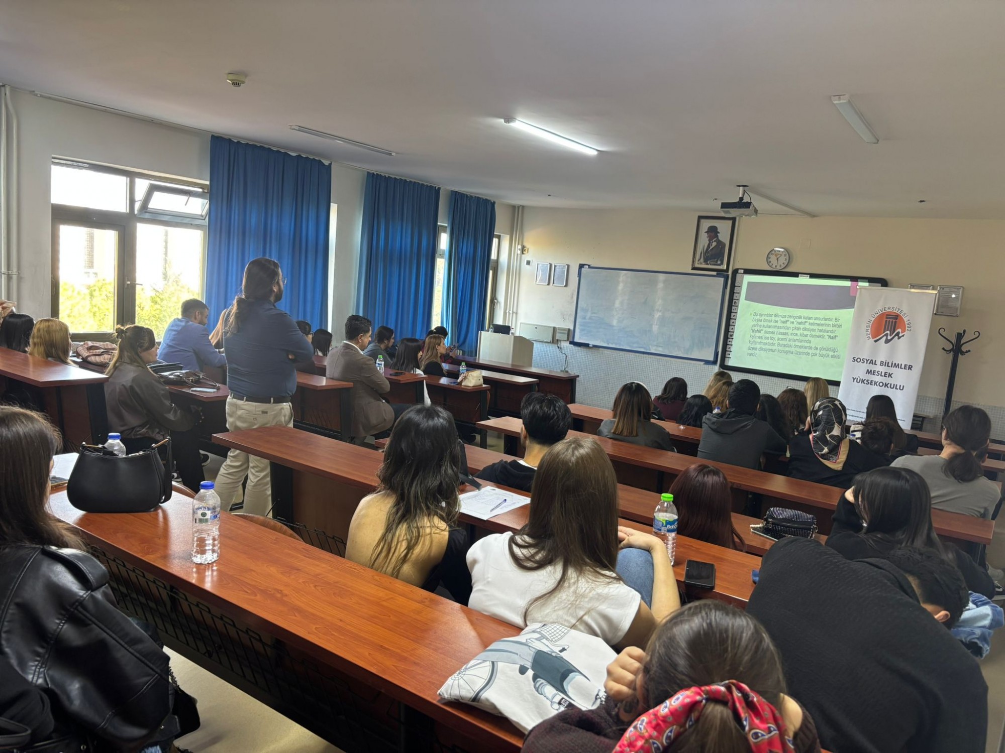 Büro Hizmetleri ve Sekreterlik Bölümü; Büro Yönetimi ve Yönetici Asistanlığı Programı “Etkili ve Güzel Konuşma” dersi, Ofis Teknolojileri ve Veri Yönetimi Programı “İletişim” dersi kapsamında; 03.12.2025 tarihinde saat 13.00’te bölüm öğrencilerimize TRT Çukurova Radyosu Spikeri Sayın Mehmet Fatih KILINÇ tarafından “Etkili ve Güzel Konuşma Sanatı” konulu bir seminer verilmiştir.