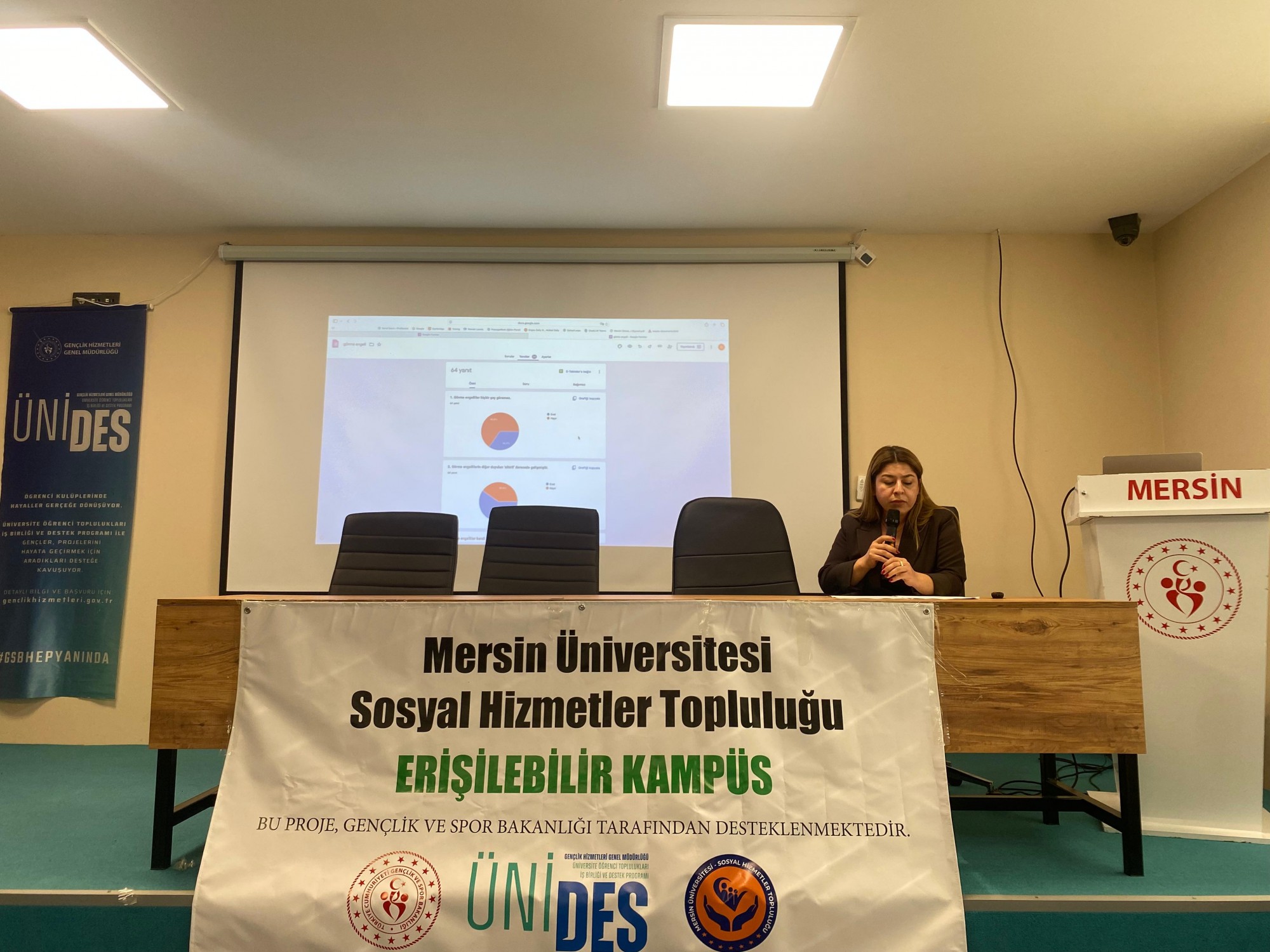 Üniversitemiz Sosyal Hizmetler Topluluğu tarafından, 3 Aralık Dünya Engelliler Günü kapsamında hazırlanan “Erişilebilir Kampüs” projesi hayata geçirildi. Gençlik ve Spor Bakanlığı Gençlik Hizmetleri Genel Müdürlüğü tarafından Üniversite Öğrenci Toplulukları İş Birliği ve Destek Programı (ÜNİDES) kapsamında destek almaya hak kazanan proje, 5 Aralık 2025 tarihinde Mezitli Engelsiz Gençlik Merkezi konferans salonunda gerçekleştirildi.