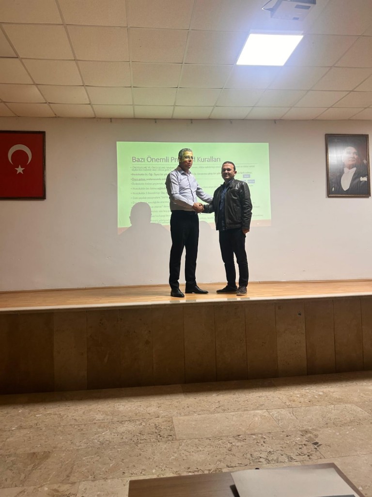 Eğitim, MYO Müdürümüz Doç. Dr. Muhammet Saygın tarafından verildi. Saygın, protokol kurallarının yalnızca resmi tören ve toplantılarla sınırlı olmadığını; kurumsal temsil, iletişim dili, hitap biçimleri ve çalışma ortamındaki davranış standartlarını kapsayan geniş bir çerçeve sunduğunu belirtti. Sunum boyunca katılımcılara; kurum içi ve kurum dışı temsil süreçleri, doğru beden dili kullanımı, nezaket kuralları, makam ve hitap düzeni, toplantı protokolü ve sosyal ortamlarda profesyonel davranış ilkeleri gibi konularda kapsamlı bilgiler aktarıldı.