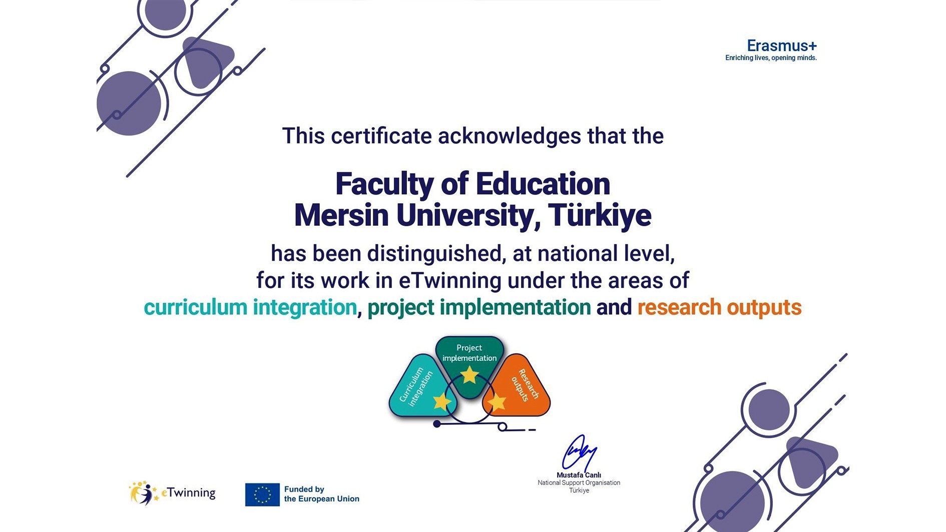 “Öğretmen adaylarımız, uluslararası projelere katılarak yabancı dilde iletişim becerilerini geliştirme, eTwinning ve Erasmus proje deneyimi kazanma, Avrupa’daki akranlarıyla iş birliği yapma fırsatlarını elde ettiler. Bu deneyimler, öğrencilerimizin hem mesleki gelişimlerine katkı sağlamakta hem de uluslararası eğitim alanında özgüvenlerini artırmaktadır.”