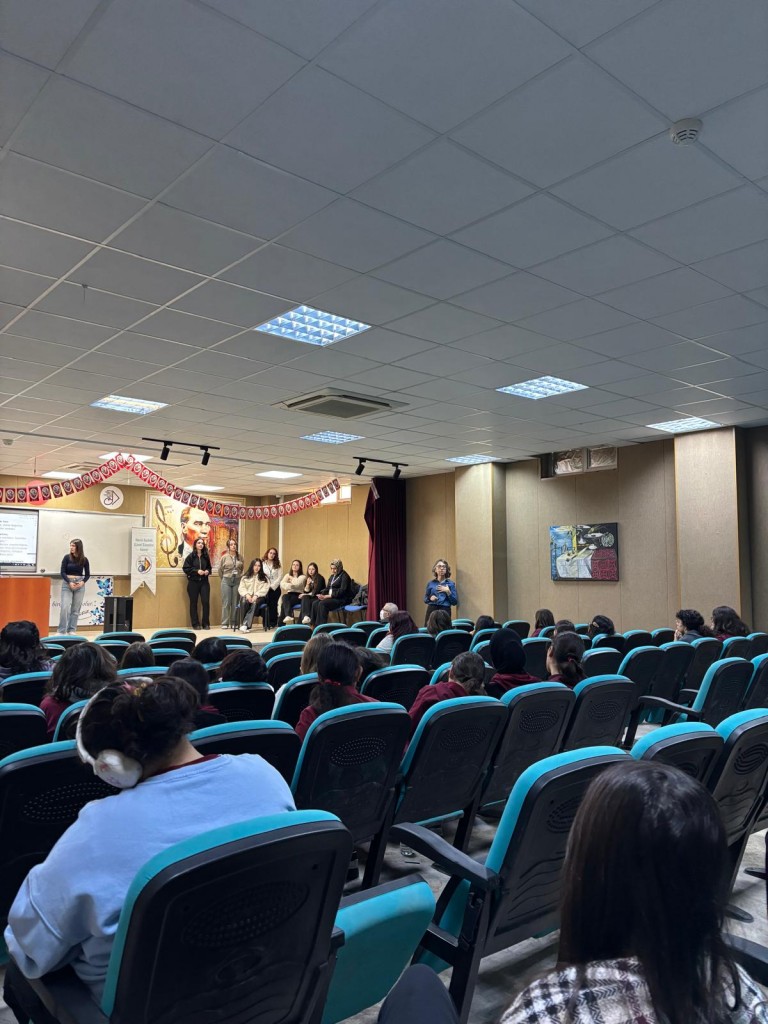 Mersin Üniversitesi Sağlık Bilimleri Fakültesi Ebelik Bölümü, 12 Aralık 2025 Cuma günü Nevit Kodallı Güzel Sanatlar Lisesi’nde Resim Bölümü kız öğrencileriyle bir araya geldi. Okulun seminer salonunda gerçekleştirilen etkinlikte, “Kadın: Zarafetin En Güçlü Hali” başlıklı interaktif bir eğitim sunumu yapıldı.