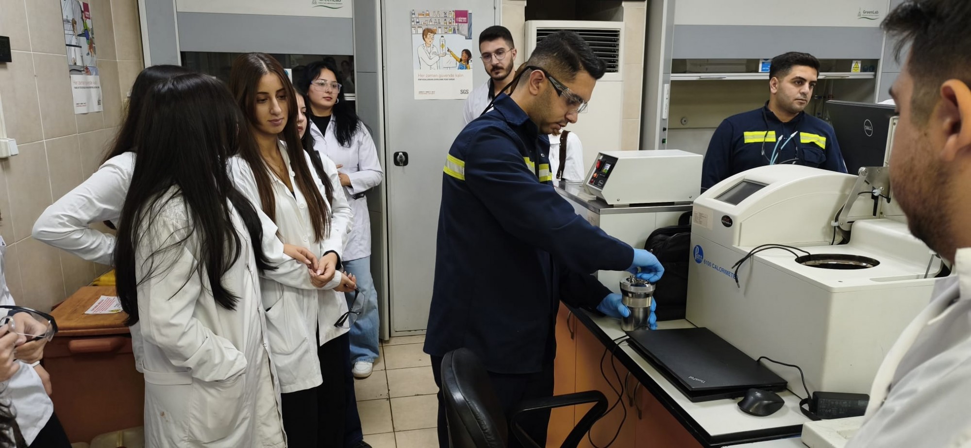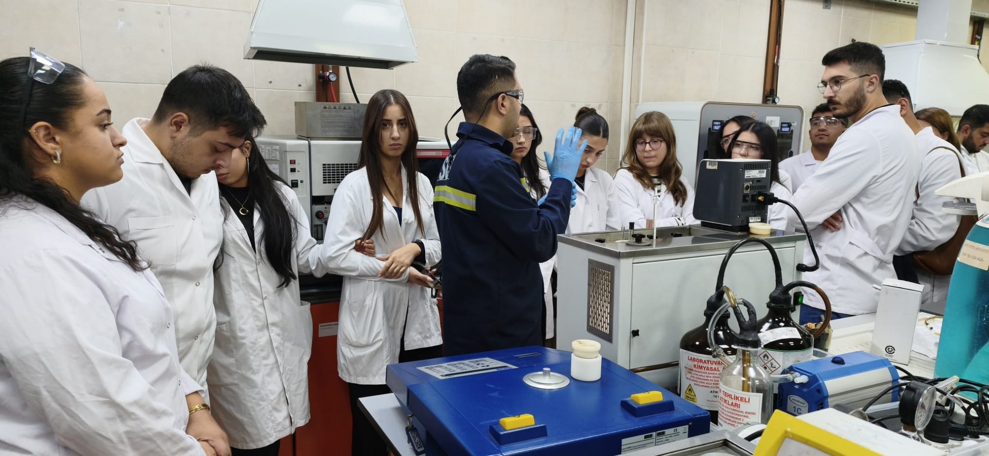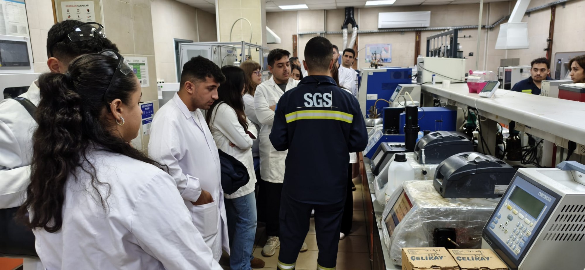 Bölümün mezun öğrencisi Kaan GÜLBURNU’nun Laboratuvar sorumluluğunu yürüttüğü SGS’ de çalışan diğer bölüm mezun öğrencilerimiz Devran YÜKSEL, Mehmet ARSLANKILIÇ, Öznur YERLİKAYA ve Buket METE eşliğinde Laboratuvarda yürütülen faaliyetler ve analizler hakkında bilgiler verilerek, çeşitli yakıt analizleri öğrencilerimiz ile birlikte uygulamalı olarak gerçekleştirildi.