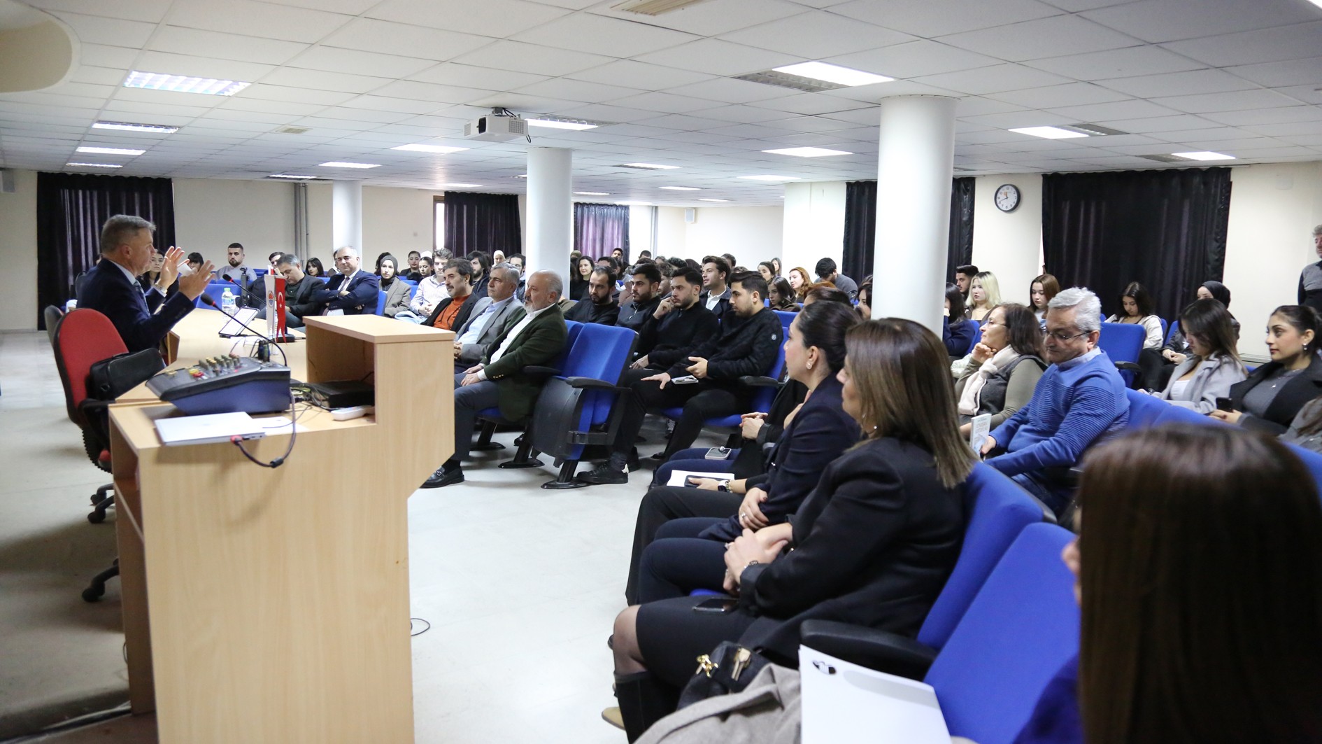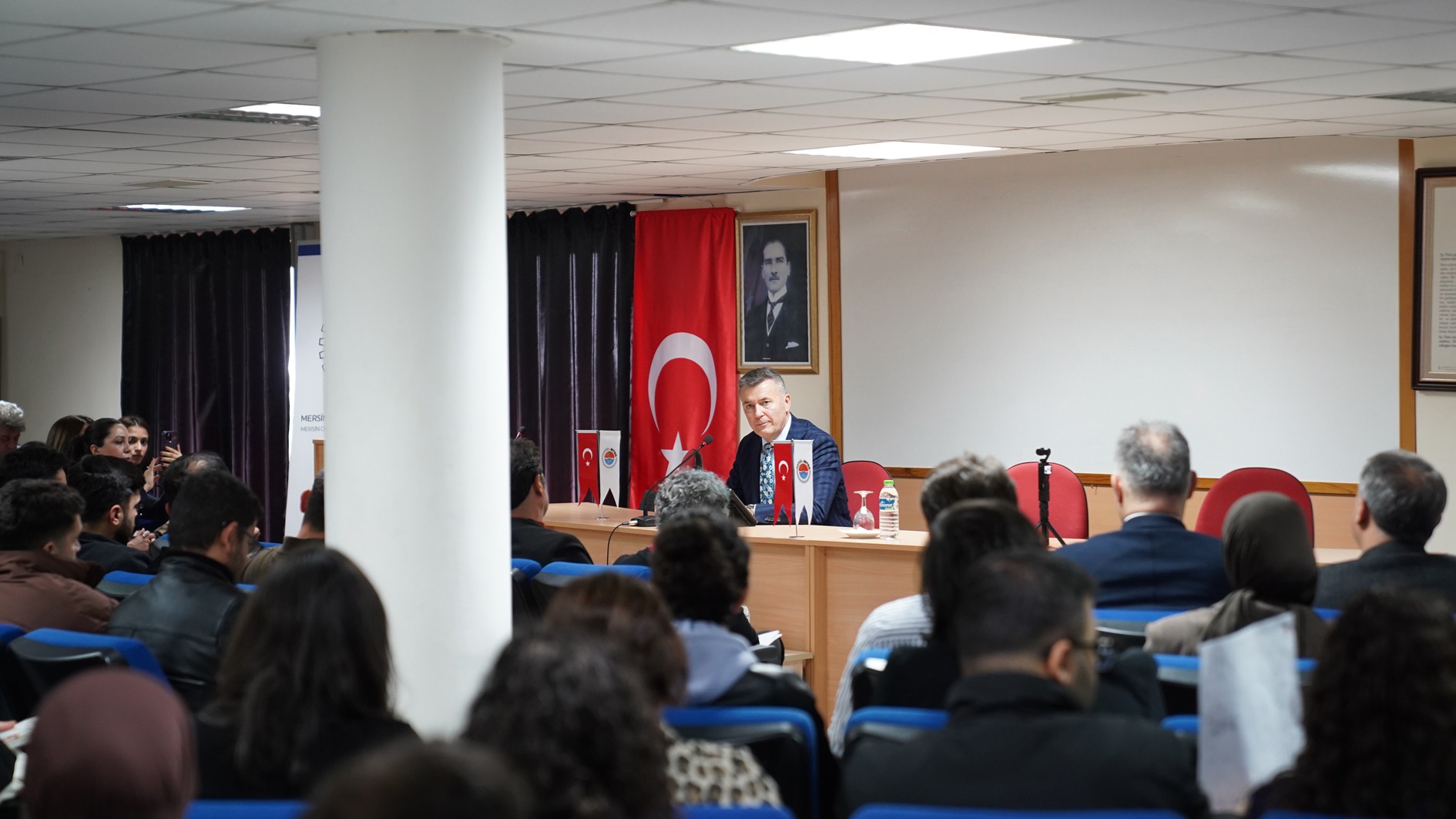 Üniversitemiz İktisadi ve İdari Bilimler Fakültesi İktisat Bölümü Mersin Sanayi ve Ticaret İşletme Yönetimi Dersi kapsamında Mersin Ticaret ve Sanayi Odası (MTSO) Başkanı Hakan Sefa Çakır’ın katılımıyla 23 Aralık Salı günü Üniversitemiz Prof. Dr. Tayfur Özşen Konferans Salonunda söyleşi düzenlendi.