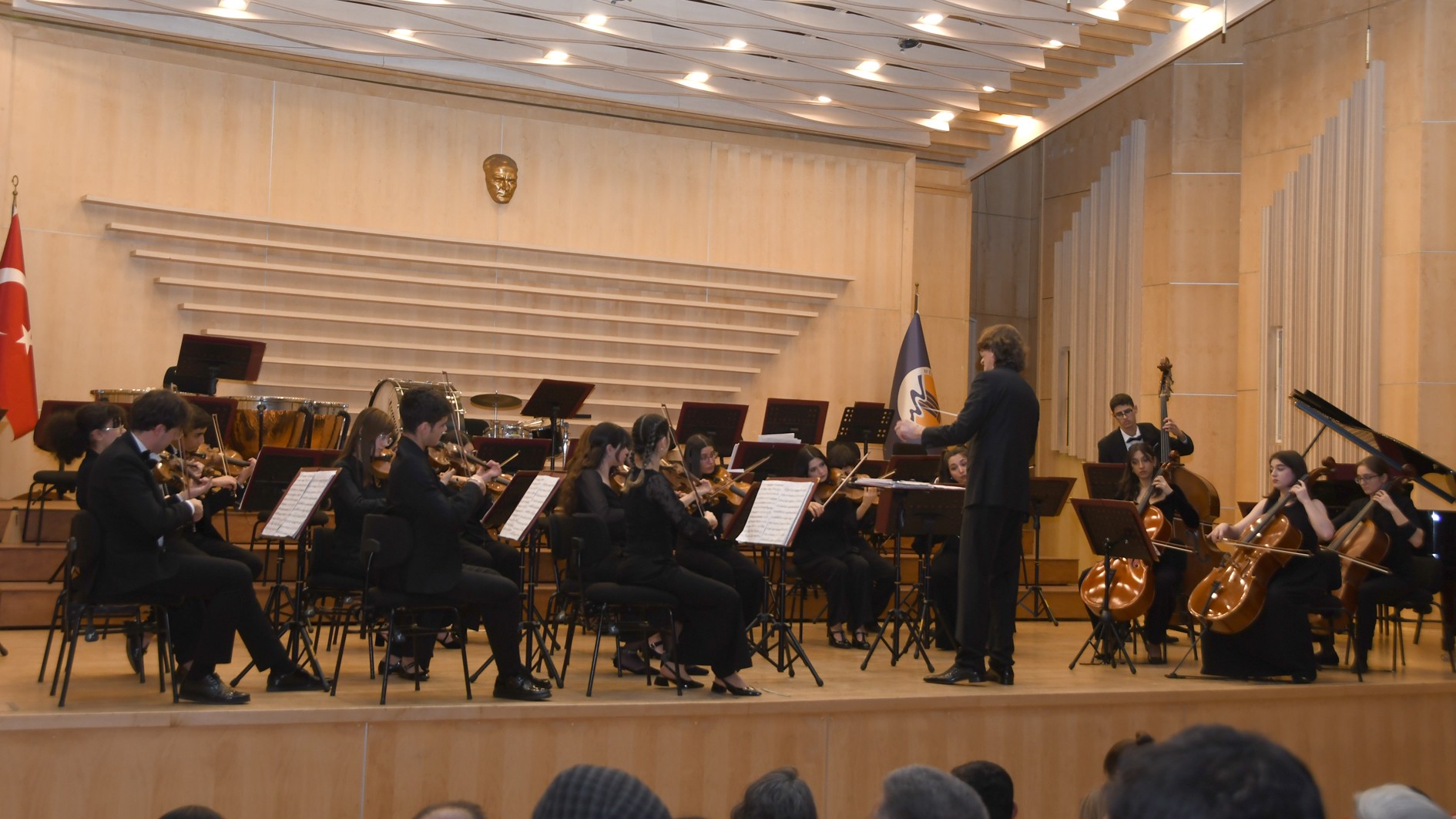 Üniversitemiz Müzik ve Sahne Sanatları Fakültesi bünyesinde 1998 yılında kurulan ve çalışmalarını Devlet Konservatuvarı öğretim elemanı Selahattin Yunkuş ile sürdüren Gençlik Senfoni Orkestrası, 23 Aralık Pazartesi günü Nevit Kodallı Uygulama ve Araştırma Merkezi’nde özel bir konser etkinliği gerçekleştirdi.