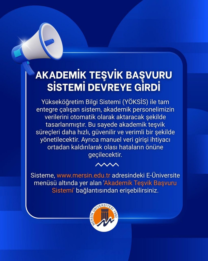 Akademik Teşvik Başvuru Sistemine ulaşmak için tıklayınız!