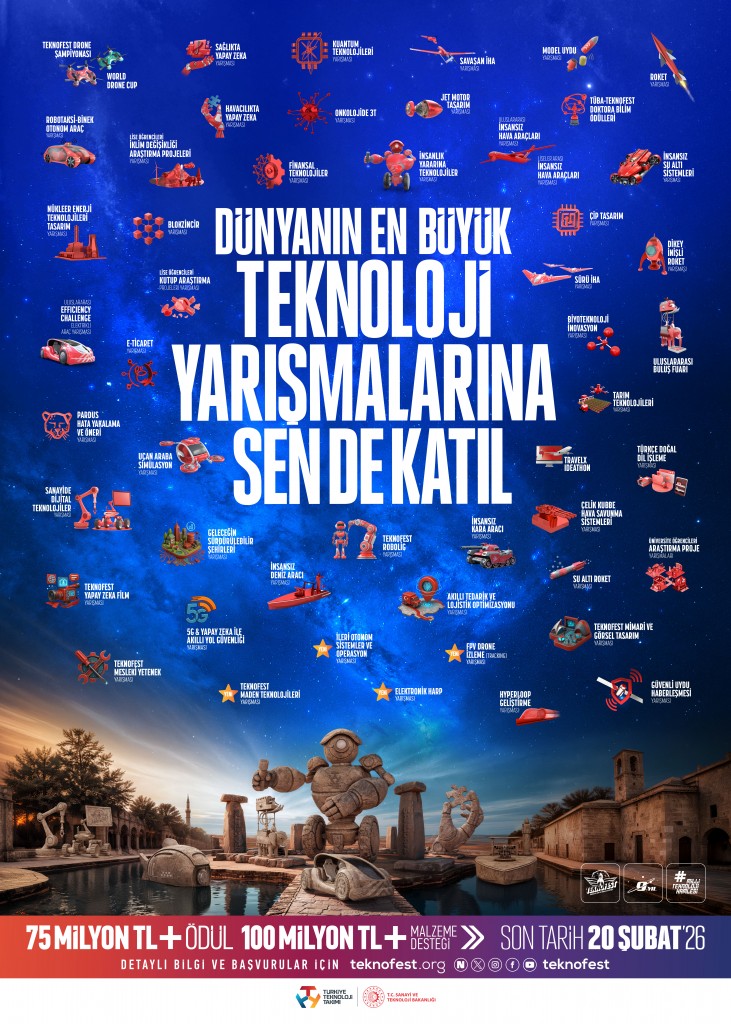 Hayalleri gerçeğe dönüştüren TEKNOFEST 2026 Teknoloji Yarışmaları’na sen de başvur, teknolojinin öncülerinden ol!