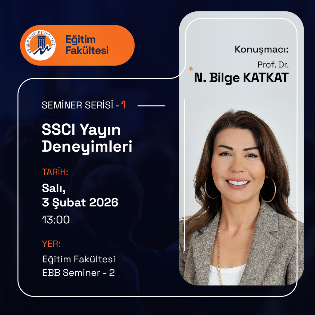 Mersin Üniversitesi Eğitim Fakültesi tarafından düzenlenen akademik gelişim etkinlikleri, “Seminer Serisi - 1” ile başladı. Serinin ilk konuğu olan Prof. Dr. N. Bilge KATKAT, “SSCI Yayın Deneyimleri” başlıklı sunumuyla öğretim elemanlarımız ve araştırma görevlilerimizle bir araya geldi. 3 Şubat 2026 Salı günü saat 13:00’te, Eğitim Fakültesi EBB Seminer - 2 salonunda gerçekleştirilen seminere akademik kadromuz yoğun ilgi gösterdi.