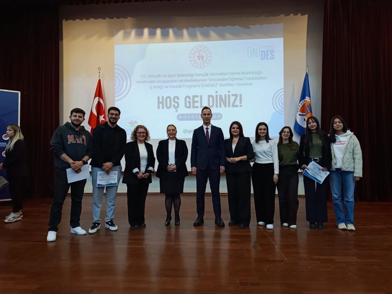 Mersin Gençlik ve Spor İl Müdürü Göksun Öz, programın ulaştığı noktadan duyduğu memnuniyeti dile getirerek, “ÜNİDES (Üniversite Öğrenci Toplulukları İş Birliği ve Destek Programı) kapsamında öğrenci topluluklarımızın yürüttüğü projelere katkı sağladığımız bu önemli çalışmada; başlangıçta bu kadar büyük kitlelere ulaşılacağını ve bu kadar güzel işler yapılacağını biz de tahmin etmemiştik. Altıncı döneme gelmiş bulunmaktayız. İnanılmaz güzel işler çıkıyor; sizin sayenizde çok güzel projeler ortaya çıkıyor. Öğrenci topluluklarımızın aktif olmasını, sahada olmasını, sosyal sorumluluk projelerinin içinde yer almasını ve kişisel gelişimini destekleyecek çalışmalar yapmasını her zaman destekliyoruz. Bazen bir köy okulunda, bazen dezavantajlı bir bölgede; bazen de kendi alanınızda çok kıymetli yerleri ziyaret ederek, alanınızdaki değerli hocalardan destek ve eğitimler alıyorsunuz. Amacımız, öğrenci topluluklarımızın hayata hazırlanmalarına bir nebze katkı sunmaktır. Bakanlık olarak öğrenci topluluklarımızın projelerini onaylamaya çalışıyoruz.” şeklinde konuştu.