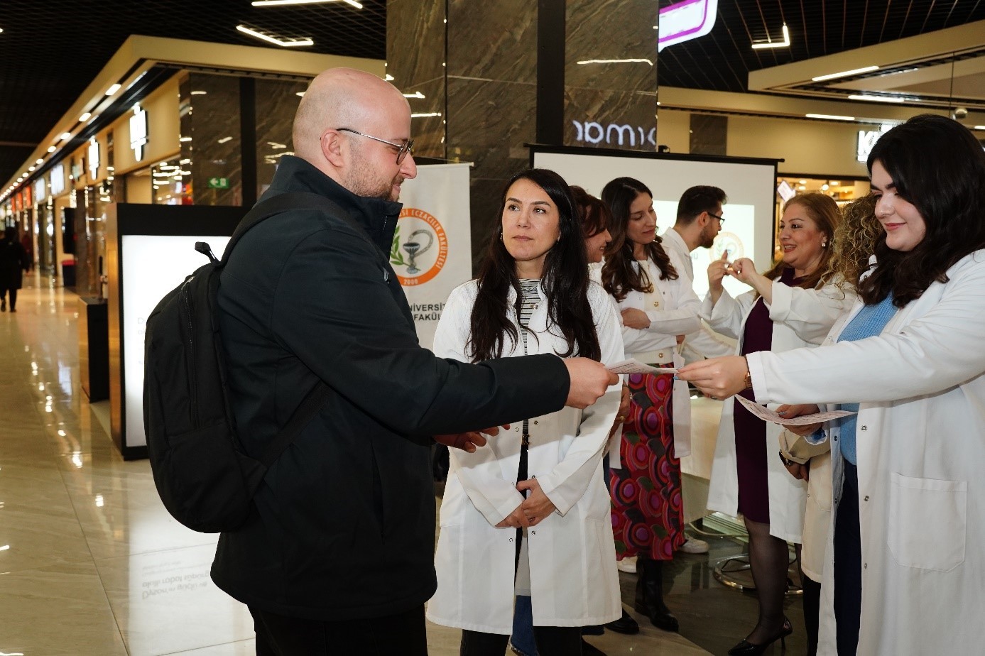 Fakültemiz Sosyal Sorumluluk ve Projeler Komisyonu tarafından 11 Şubat 2026 tarihinde “4 Şubat Dünya Kanser Günü” farkındalık etkinliği gerçekleştirildi. Etkinliğe, Fakültemiz Dekanı Prof. Dr. Necmiye CANACANKATAN, Dekan Yrd. ları Doç. Dr. Mahmut ÜLGER, Dr. Öğr. Üyesi Ş. Efsun ANTMEN, Fakülte Sekreterimiz Volkan DARÇIN, Fakültemiz öğretim elemanları, ve öğrencileri katıldı. Etkinlik kapsamında, Fakültemiz Sosyal Sorumluluk ve Projeler Komisyonu ve öğrencileri Sayapark Alışveriş Merkezinde standımızı ziyaret eden bireyleri kanser türleri, belirtileri, risk faktörleri, korunma yolları, erken tanının önemi ve tedavisi hakkında bilgilendirerek broşür dağıttı. Gerçekleştirilen bu etkinlikte “4 Şubat Dünya Kanser Günü” kapsamında kanser hastalığa dikkat çekilmiş ve farkındalık sağlanmış oldu.
