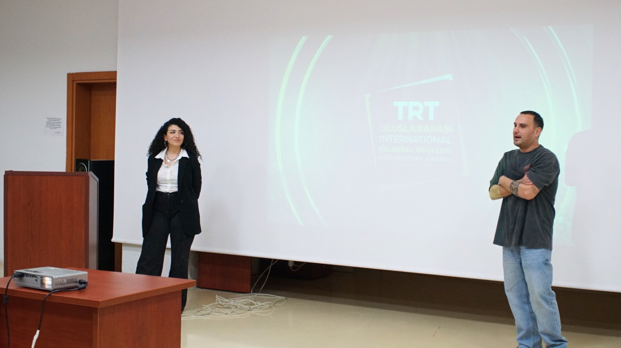 Türkiye Radyo Televizyon Kurumu (TRT) tarafından düzenlenen 17. Uluslararası Belgesel Ödülleri kapsamında başvuru süreci ve yarışma detaylarına ilişkin bilgilendirme toplantısı, Fakültemiz Amfisi’nde yoğun katılımla gerçekleştirildi. Belgesel sinemaya ilgi duyan öğrencilerimizin katılım gösterdiği etkinlikte, yarışmanın kapsamı, başvuru koşulları ve değerlendirme kriterlerine ilişkin kapsamlı bilgiler paylaşıldı.
