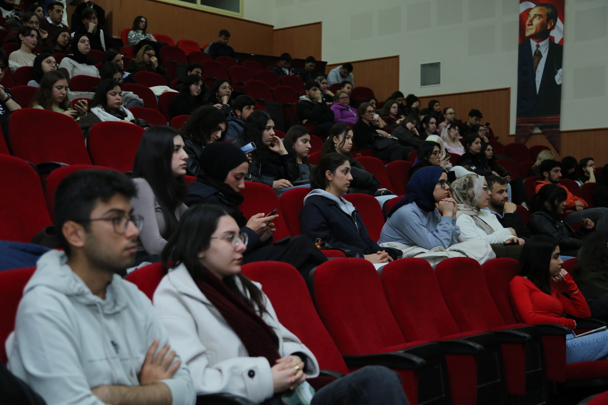 Ardından, Erasmus+ Gençlik ve Avrupa Dayanışma Programı (ESC) gönüllülük projeleri hakkında bilgilendirme yapmak üzere Ahmet Abalı söz aldı. Sunumda, Erasmus+ gençlik projelerinin kapsamı, gönüllülük fırsatları ve öğrencilerin bu projeler aracılığıyla edinebilecekleri sosyal ve kişisel kazanımlar ele alındı.