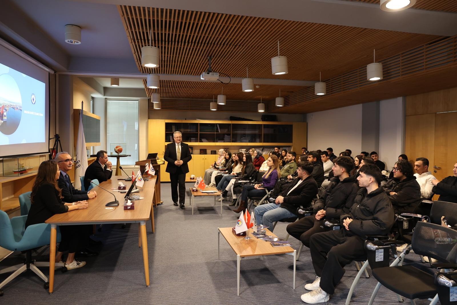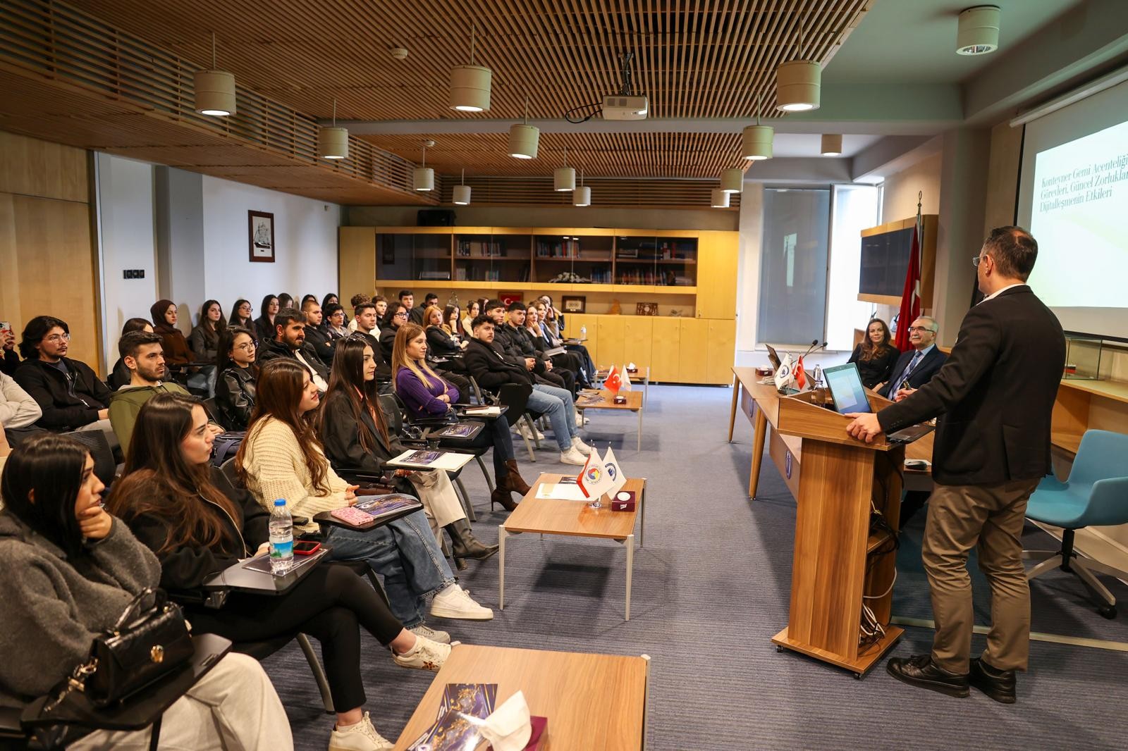 Sunumların bitiminin ardından soru cevap kısmında öğrencilerin Gemi Acente İşletmeciliği ve Lojistik mesleğine dair soruları yanıtlandı.