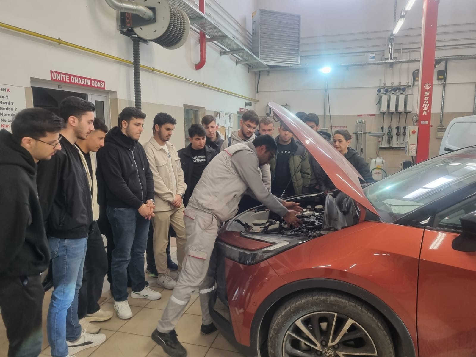 Program kapsamında öğrencilere hibrit ve elektrikli araçların çalışma prensipleri, yüksek voltaj sistemleri, güvenlik prosedürleri ve bakım–onarım süreçleri hakkında hem teorik hem de uygulamalı bilgiler aktarıldı. Eğitim sırasında öğrenciler, yeni nesil araç teknolojilerini yakından inceleme ve uygulama süreçlerini gözlemleme fırsatı buldu.