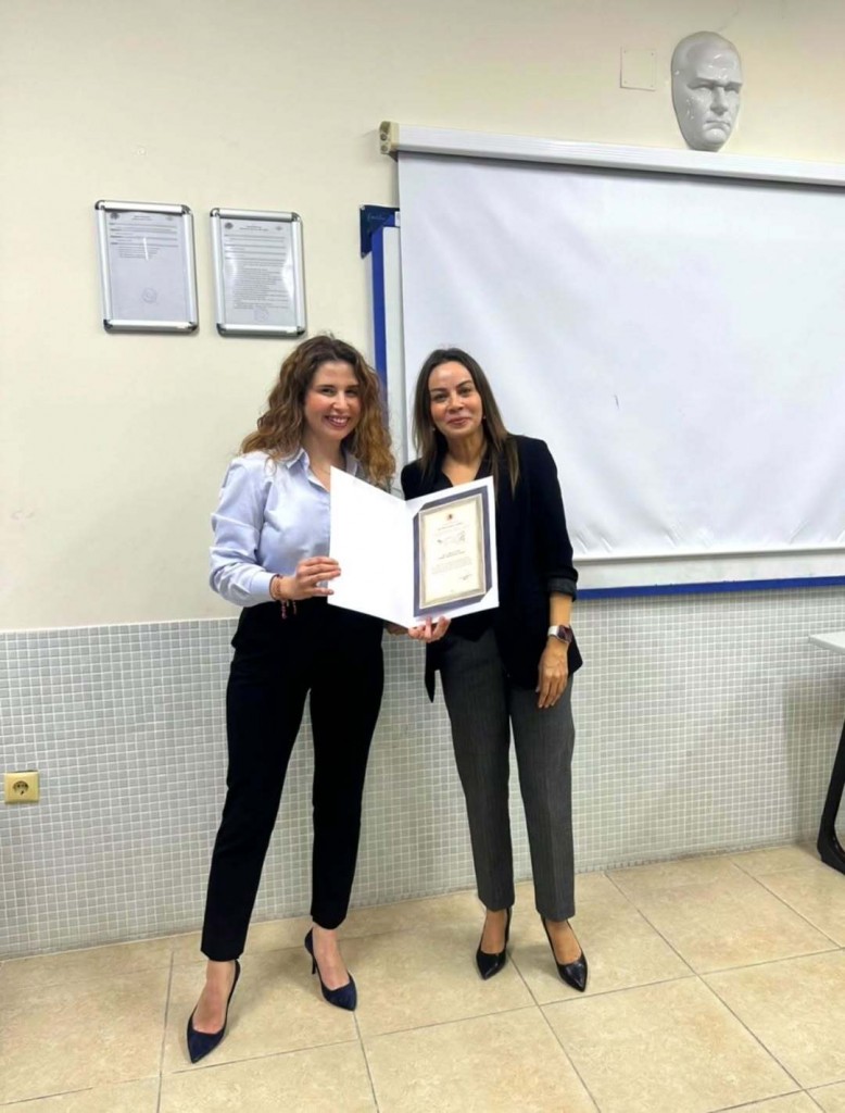 Etkinlik sonunda, seminere sağladığı katkılar dolayısıyla Yağmur Bakşi’ye teşekkür belgesi, Sosyal Bilimler Meslek Yüksekokulu öğretim elemanı Öğr. Gör. Dr. Gül Ferhande Canpolat tarafından takdim edildi.