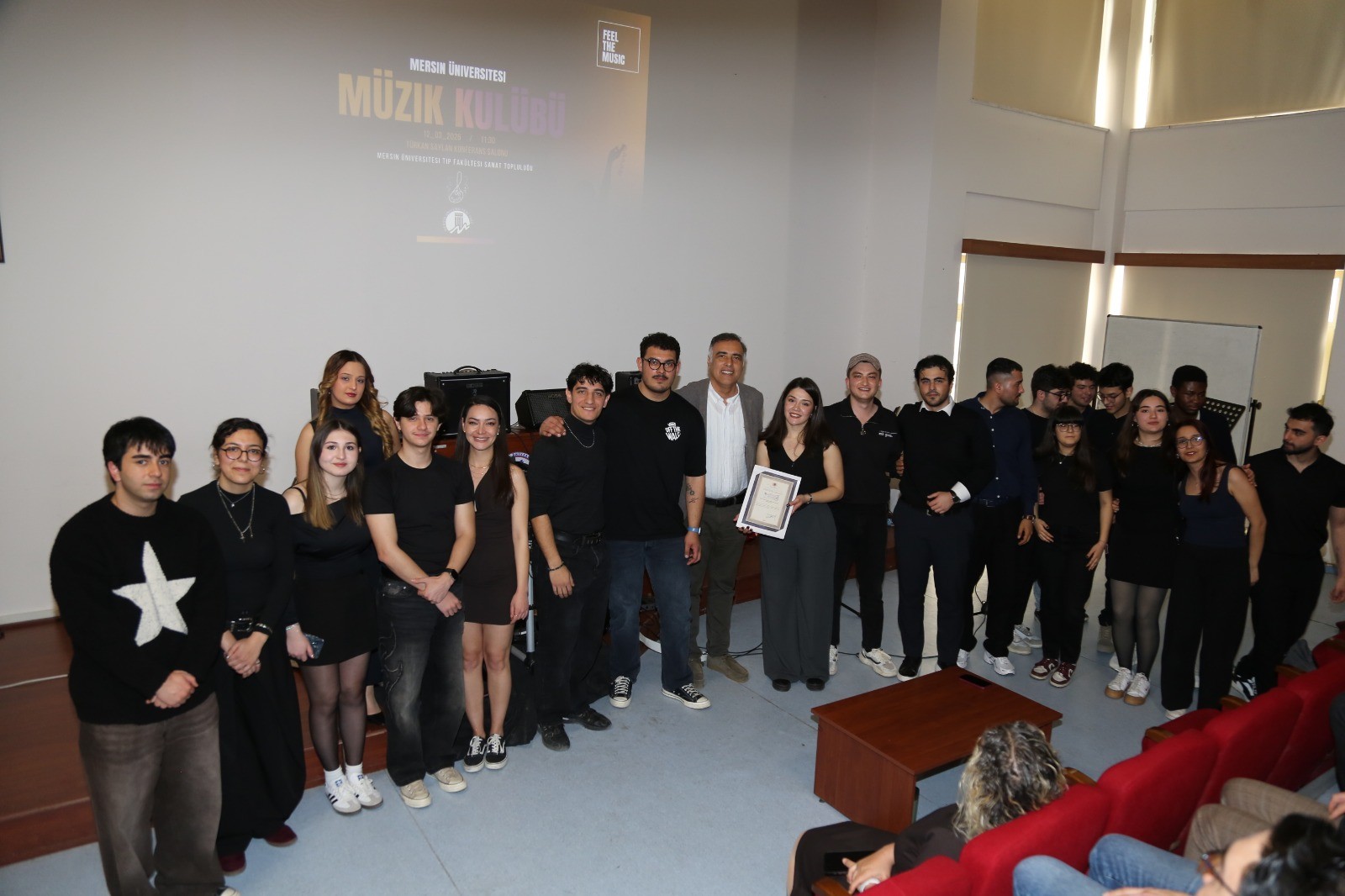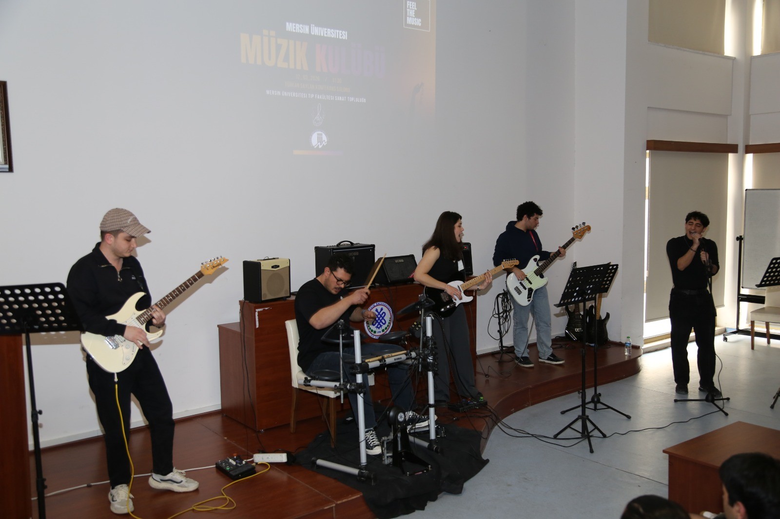 14 Mart Tıp Bayramı etkinlikleri kapsamında, 12 Mart 2026 Perşembe günü saat 11.30–13.00 arasında Türkan Saylan Konferans Salonu’nda Mersin Üniversitesi Müzik Kulübü- Mersin Üniversitesi Tıp Fakültesi Sanat Topluluğu tarafından düzenlenen müzik şöleni büyük ilgi gördü.