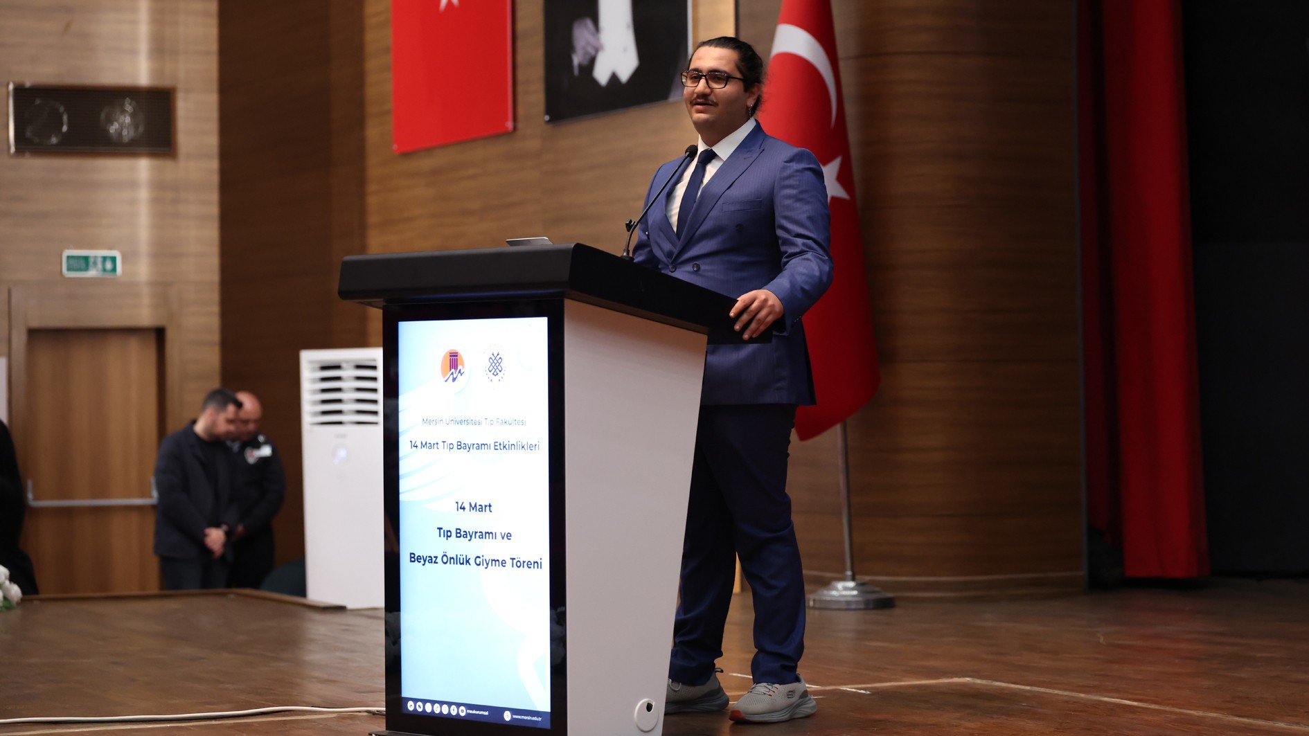 Tıp Fakültesi Öğrenci Temsilcisi Muhammed Cihan Dursun ise yaptığı konuşmada yeni başlayan öğrencilere seslenerek, beyaz önlüğün bilgiye, emeğe, sorumluluğa ve insan hayatına adanmış bir yolculuğun sembolü olduğunu ifade etti. Mersin Üniversitesi Tıp Fakültesi ailesine katılan öğrencilerin artık yalnızca sınıf arkadaşı değil, aynı zamanda meslek yolculuğunda birbirlerinin yol arkadaşları olduklarını belirterek yeni öğrencileri fakülte ailesine davet etti.