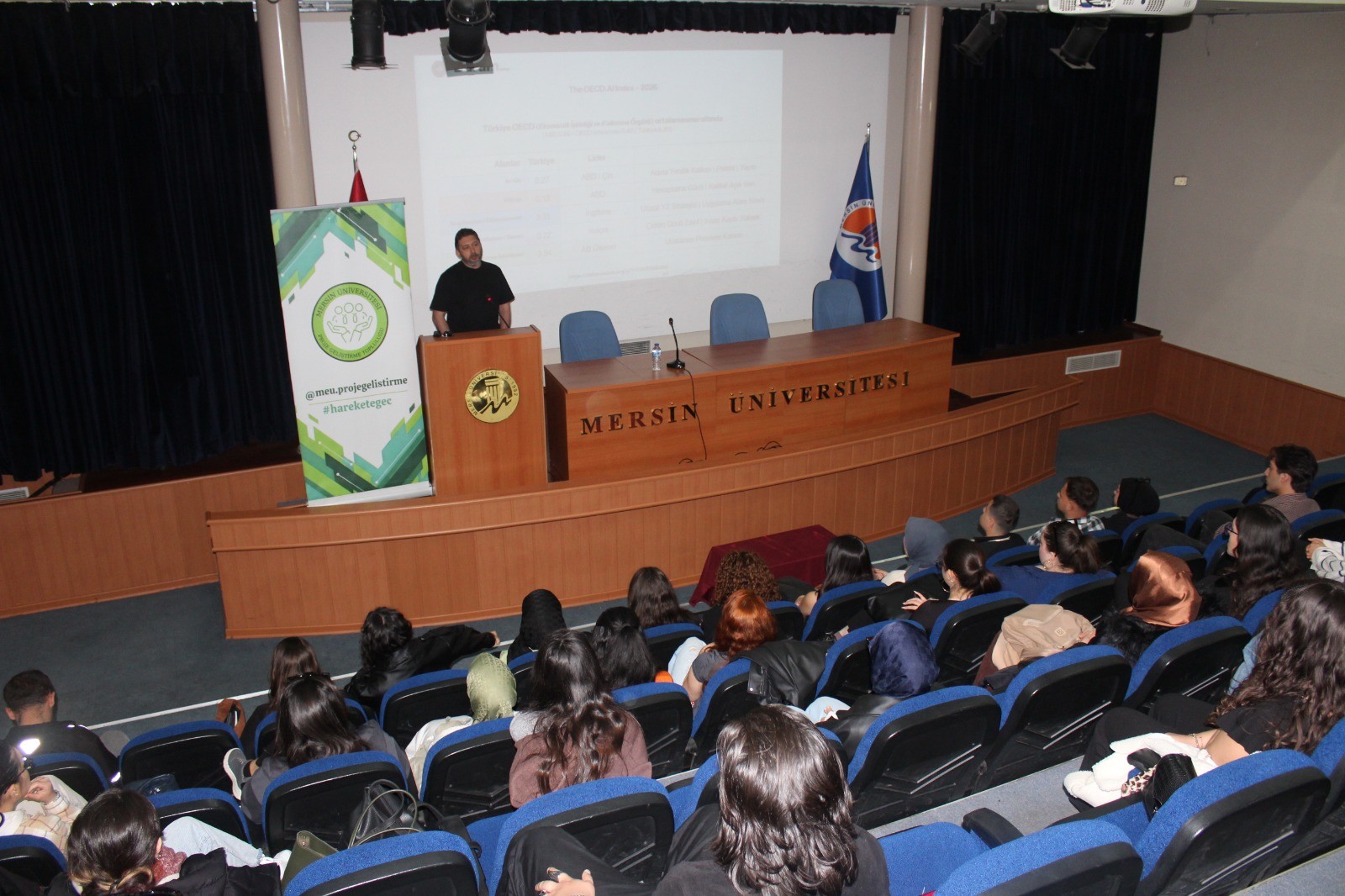 Mersin Üniversitesi (MEÜ) Proje Geliştirme Topluluğu tarafından düzenlenen “Yapay Zekâ Okuryazarlığı” semineri, 9 Mart 2026 tarihinde Prof. Dr. Uğur Oral Kültür Merkezi’nde gerçekleştirildi. Etkinlikte, MEÜ Teknoloji Transfer Ofisi (TTO) öğretim elemanlarından Öğr. Gör. Dr. Taner Sezer, “Yapay Zekâyla Anlaşmak” başlıklı kapsamlı bir sunum gerçekleştirdi.