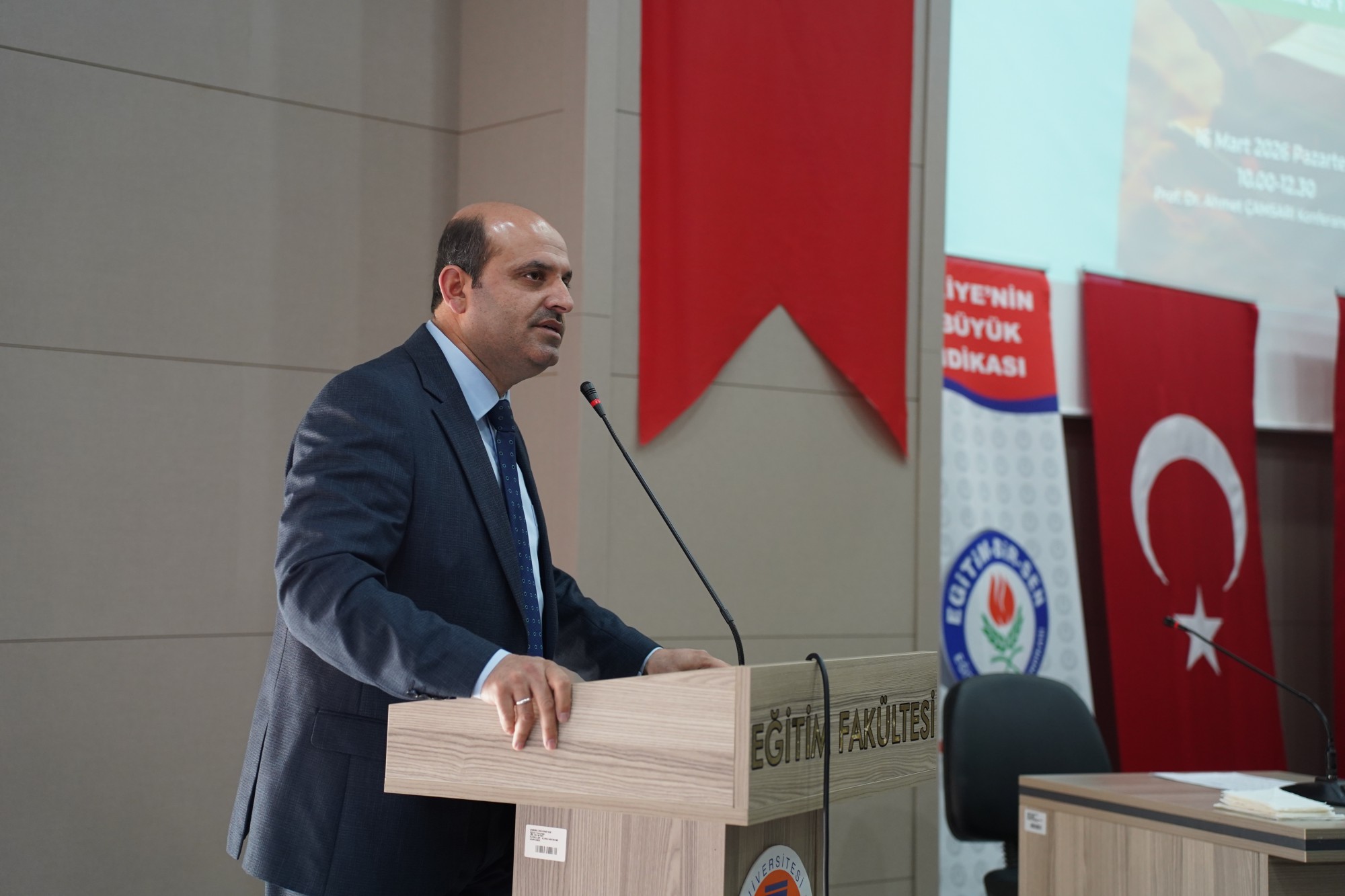 16 Mart Pazartesi günü Üniversitemiz Prof. Dr. Ahmet Çamsarı Konferans Salonu’nda düzenlenen programa; Rektörümüz Prof. Dr. Erol Yaşar, Mersin İl Millî Eğitim Müdürü Muhammed Özdemirci, Mersin İl Müftüsü Mustafa Topal, Akdeniz İlçe Müftüsü Necati Gündoğdu, Daire Başkanlarımız, Eğitim-Bir-Sen Üniversite Şube Başkanı Dr. Ömer Özbilen, akademik ve idari personelimiz ile çok sayıda öğrencimiz katıldı.