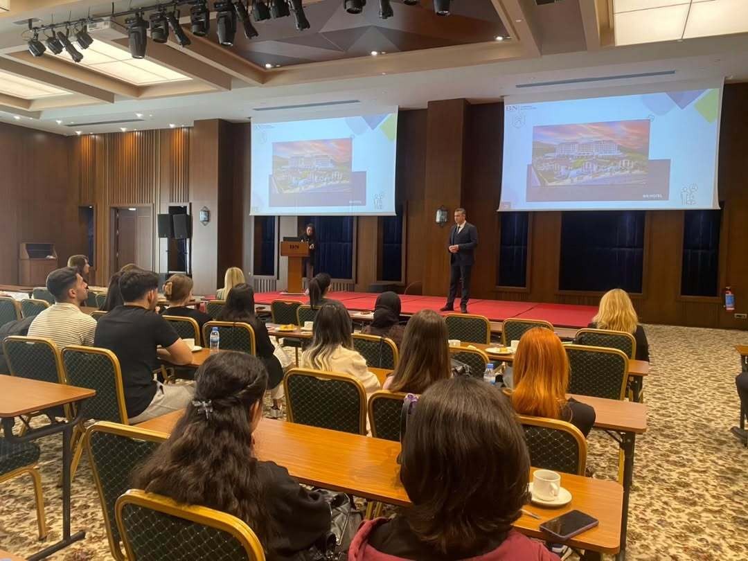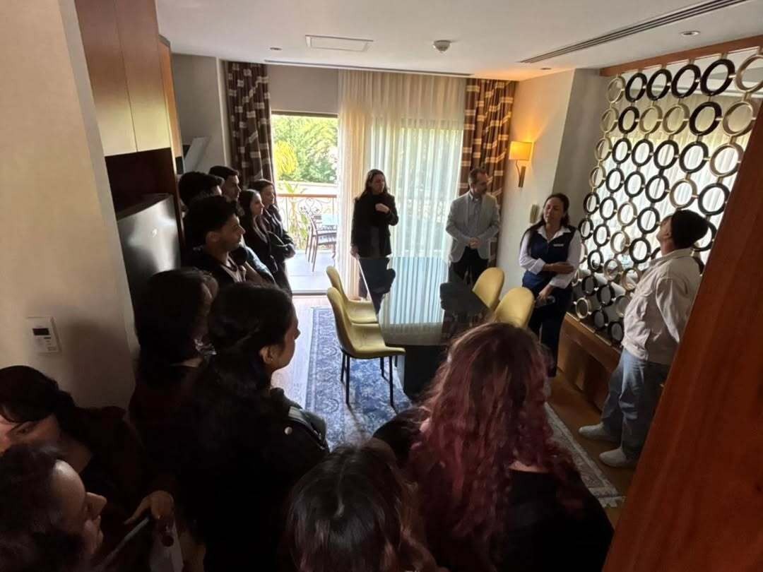 Tesis gezisinin ardından toplantı salonunda işletmeye ilişkin kurumsal tanıtım sunumu gerçekleştirildi ve öğrencilere sektördeki kariyer olanakları hakkında bilgilendirme yapıldı. Programın son bölümünde otel yöneticileri, kendi kariyer yolculuklarına ilişkin deneyimlerini paylaşarak öğrencilere mesleki gelişimlerine yönelik rehberlik edecek önemli tavsiyelerde bulundu.