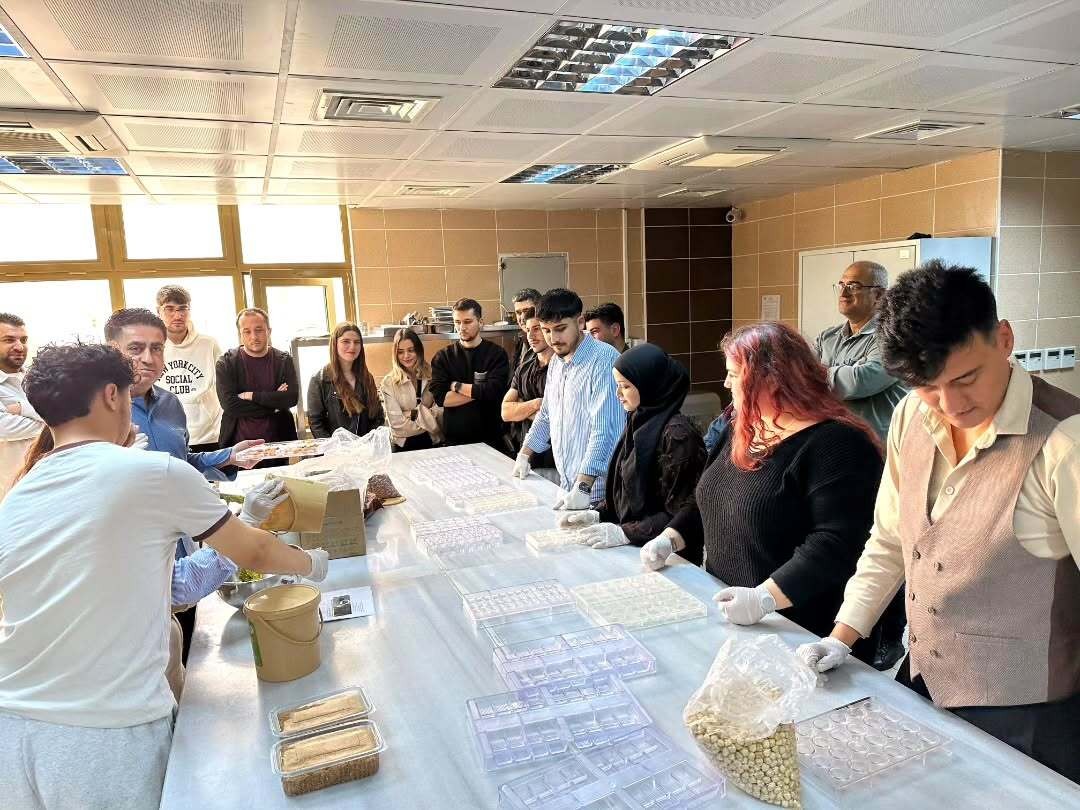 Workshop süresince çikolata üretiminin incelikleri uygulamalı olarak aktarılırken, öğrenciler farklı tekniklerle çeşitli ürünler hazırlama fırsatı buldu. Gastronomi ve Mutfak Sanatları yüksek lisans öğrencileri Osman Arda Saraçoğlu ve Pelin Su Aydın da etkinliğe destek vererek sürece katkı sağladı.