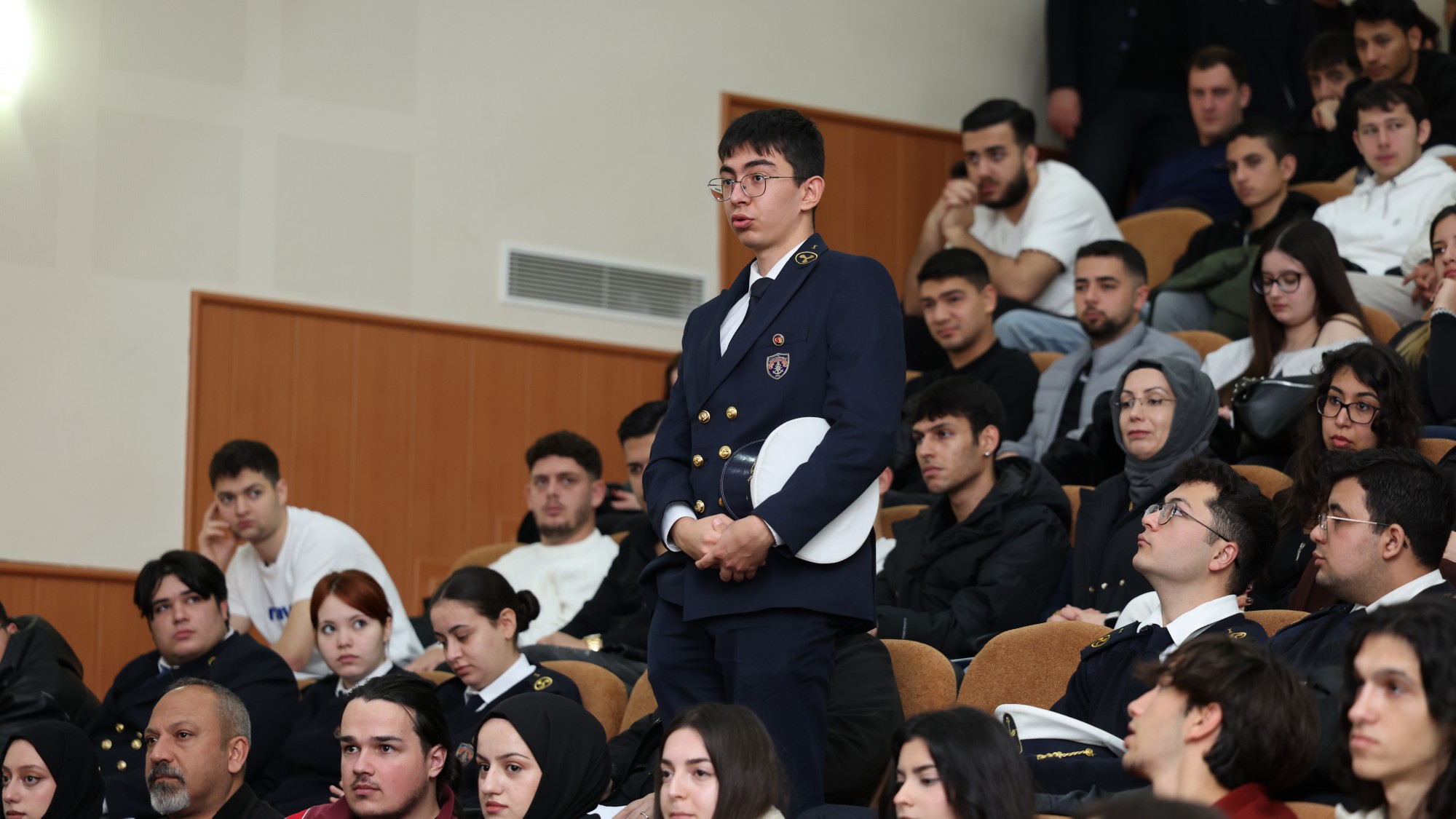 Programın kapanışında sahneye gelen Rektörümüz Prof. Dr. Erol Yaşar, ufuk açıcı ve değerli bilgiler sunan Dz. Yb. Serkan Karslı’ya Üniversitemiz adına teşekkür ederek günün anısına plaket takdim etti.