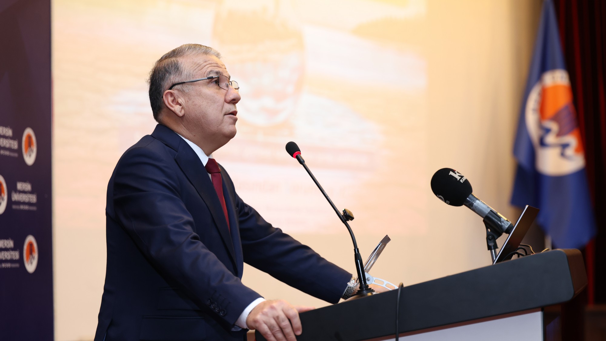 Kuraklık ve su stresinin artık geleceğin ihtimali olmaktan çıkıp bugünün en acil ve yakıcı gerçeği hâline geldiğine dikkat çeken Rektörümüz Prof. Dr. Yaşar, Üniversite olarak şehrin ve ülkenin sorunlarına bilimsel çözümler üretmeyi en büyük sorumluluk olarak gördüklerini ifade etti. Çalıştayın anlamlı mottosuna atıfta bulunan Rektörümüz Prof. Dr. Erol Yaşar, bu sorumluluk bilinciyle suyu korumak, akılcı stratejiler geliştirmek ve gelecek nesillere yaşanabilir bir dünya bırakmak için akademi, kamu ve yerel yönetimlerin omuz omuza çalışmasını son derece önemsediklerini kaydetti.