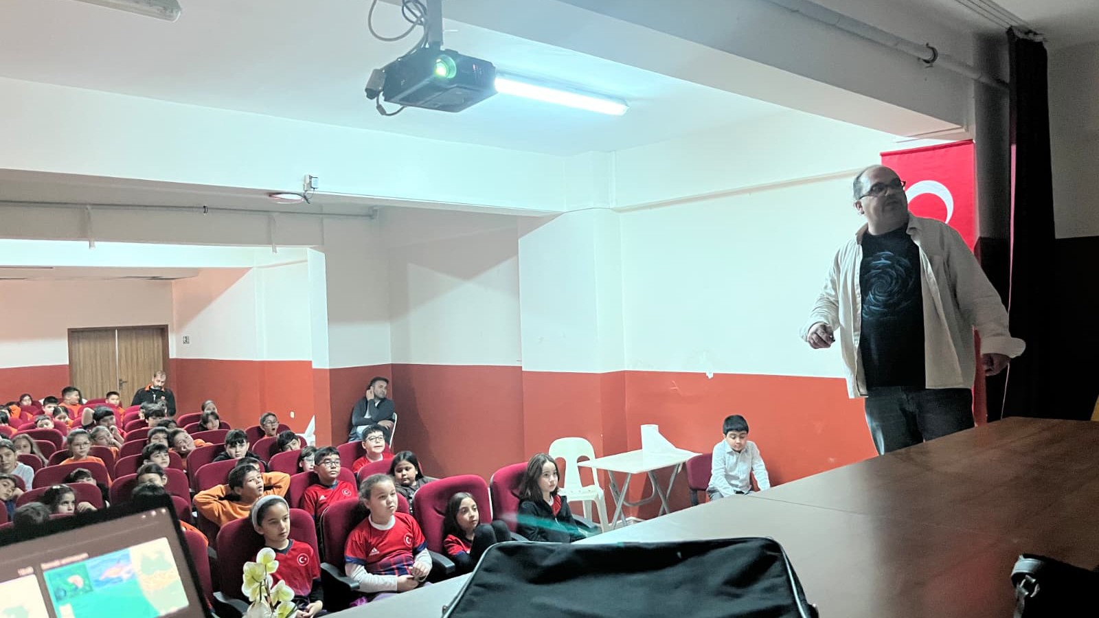 İlkokul öğrencilerinin bilime ve araştırmaya olan ilgilerini artırmayı hedefleyen programda Öğr. Gör. Dr. Demir, kendi akademik kariyer yolculuğundan da bahsederek öğrencileri bilimsel araştırmalara yönelmeleri konusunda teşvik etti.