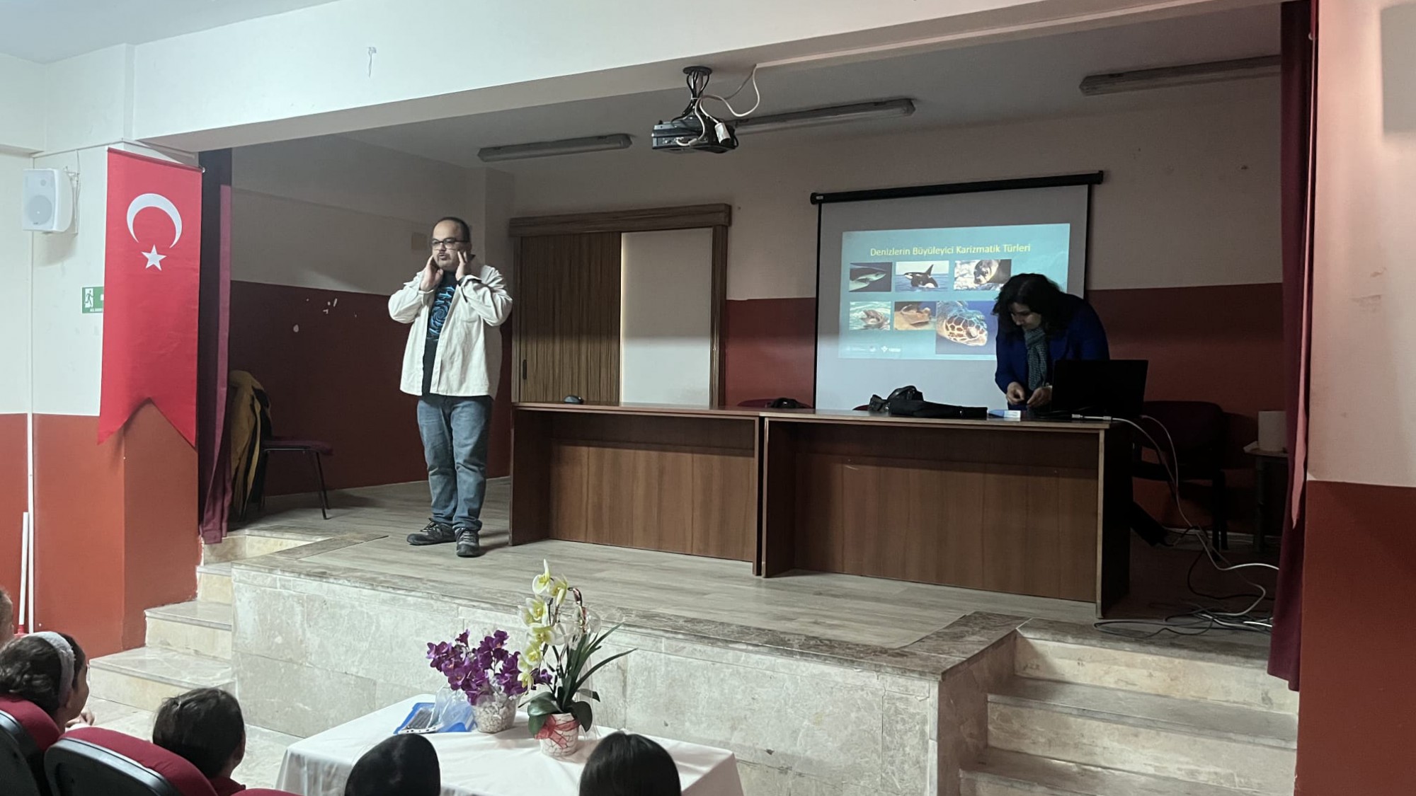 Üniversitemizin bilimsel bilgi birikimini toplumla paylaşma ve genç nesillerde farkındalık oluşturma misyonu doğrultusunda 26 Mart Perşembe günü düzenlenen etkinlikte, Öğr. Gör. Dr. Demir tarafından "Denizlerin Büyüleyici Karizmatik Türleri" başlıklı ufuk açıcı bir sunum gerçekleştirildi.