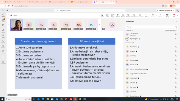 Enstitümüz çevrim içi seminerler dizisi kapsamında Hemşirelik Anabilim Dalı Doktora Mezunumuz Özge DALGALAR’ın  ‘’Bilinçli Farkındalıkla Emzirme’’ konulu sunumu 06.04.2026 tarihinde saat 14:00’da çevrimiçi olarak gerçekleştirilmiştir.