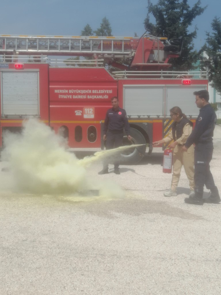 Tatbikatta, Mersin Büyükşehir Belediyesi İtfaiye Dairesi Başkanlığı ekipleri yerini aldı. Alanında uzman itfaiye personeli, katılımcılara yangın anında doğru müdahale yöntemleri, tahliye süreçleri ve arama-kurtarma teknikleri hakkında uygulamalı eğitim sundu.