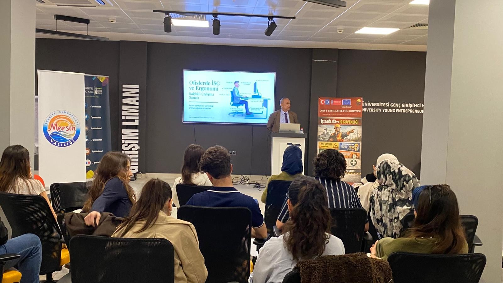 Mersin Valiliği Avrupa Birliği ve Dış İlişkiler Bürosu ortaklığında yürütülen; "İş Kazaları ve İş Güvenliği Alanında Rehberlik" projesi kapsamında 14 Nisan 2026 tarihinde Mersin'de düzenlenen Çalıştayda, İSG Merkez Müdürü Prof. Zeki YARAR ve Merkez Müdür Yardımcısı Prof. Dr. Levent SON tarafından katılımcı gençlere "iş sağlığı ve güvenliği, risk yönetimi ve güvenli çalışma kültürü" konularında eğitim verildi.